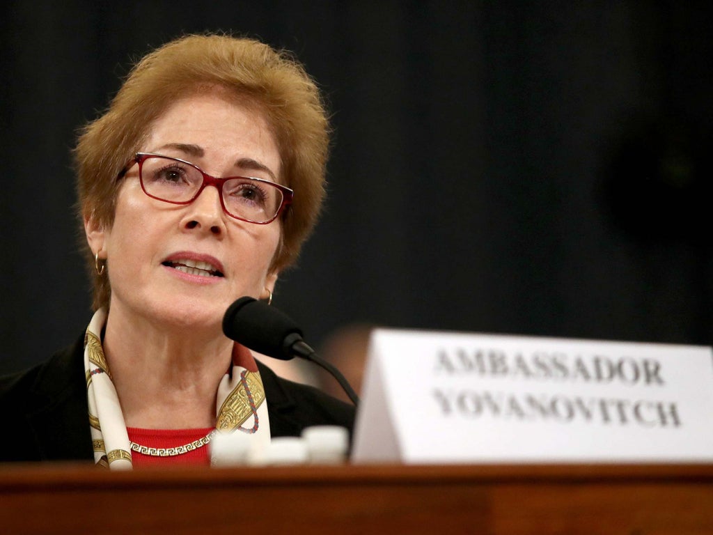 Ms Yovanovitch, who had served across Republican and Democratic administrations, was targeted as part of a smear campaign by the former president’s allies, and she was abruptly recalled from her post following allegations from Rudy Giuliani and others that she sought to undermine the Trump administration’s efforts to persuade Ukraine officials to target Mr Biden and his son Hunter.