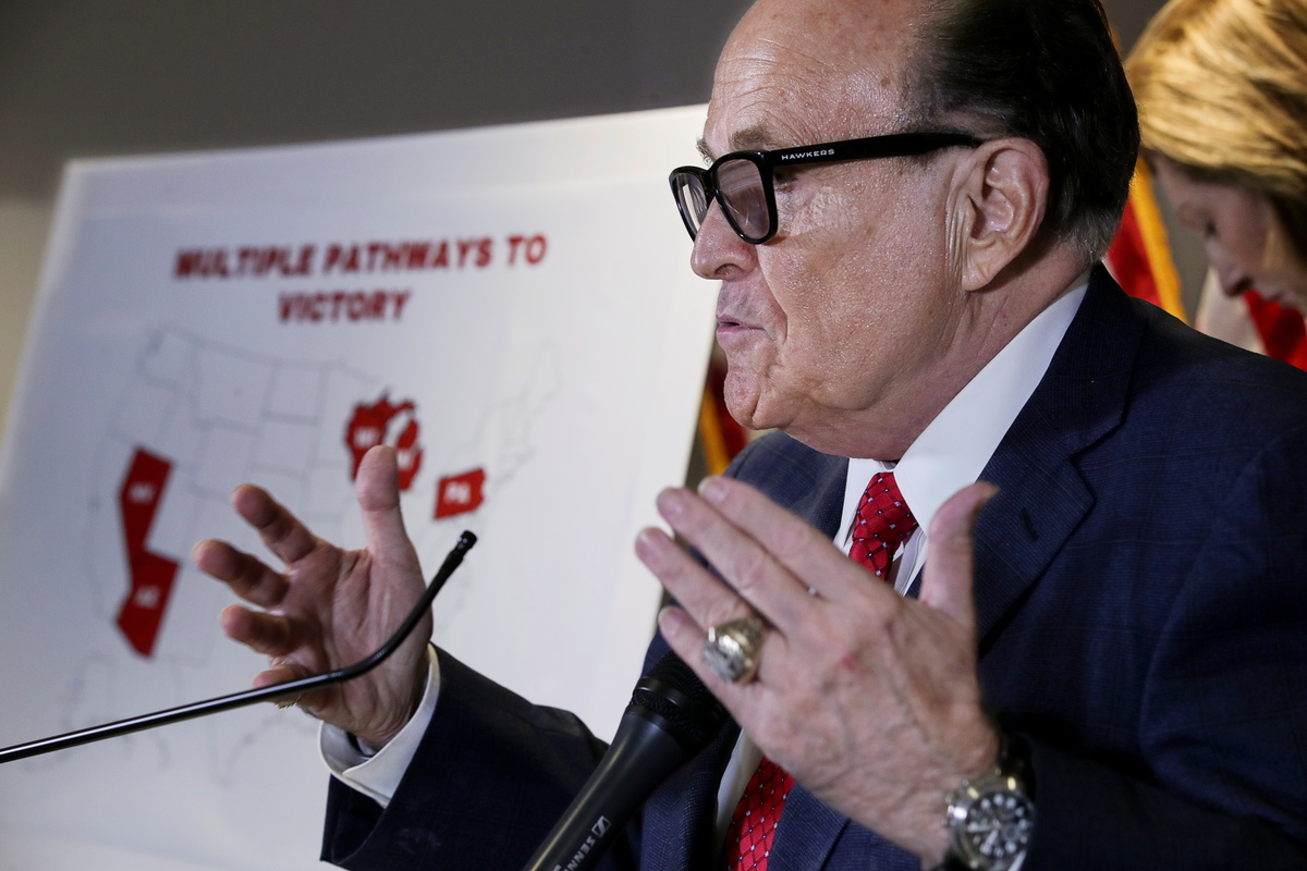 At a news conference on Thursday, Giuliani said he planned to file more lawsuits and that Democrats had engaged in a "national conspiracy" to manipulate vote totals, although he admitted he did not have any evidence.