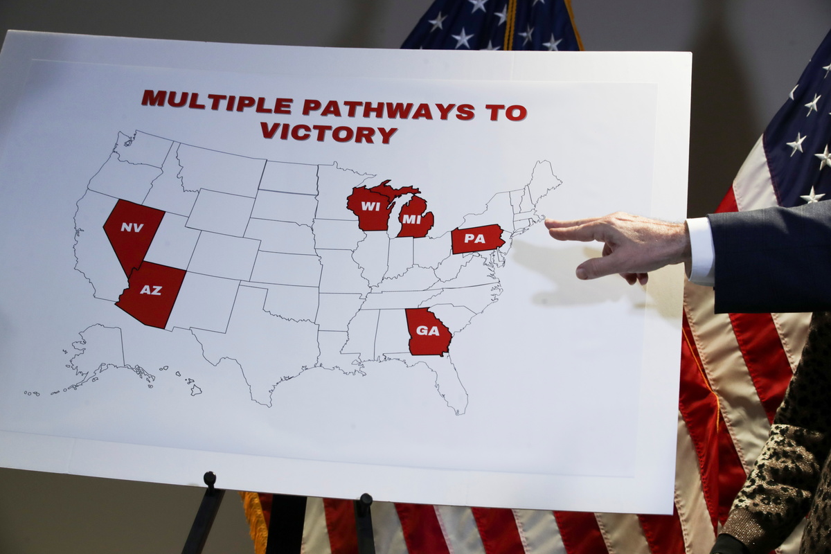 The campaign has filed multiple lawsuits to try to challenge the results in battleground states that Biden won, as election officials across the country have affirmed that there is no evidence of major irregularities. Judges in three states delivered new legal setbacks to the campaign on Thursday, rejecting claims of improper vote counting.