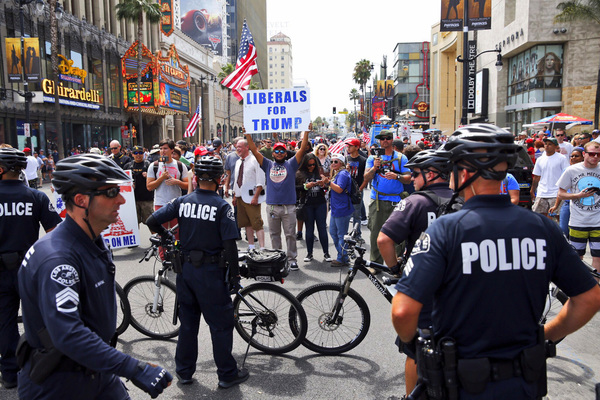 This is the second time that pro- and anti-Trump groups will have squared off along Hollywood Boulevard. In March, dozens of activists on both sides rallied. Tensions were high, but the demonstrations were relatively peaceful, ending with at least two arrests.