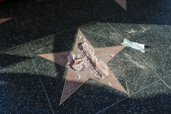 Last October, a man took a sledgehammer and damaged Trump's star. In June the star was covered with stickers during the L.A. Pride Resist March.