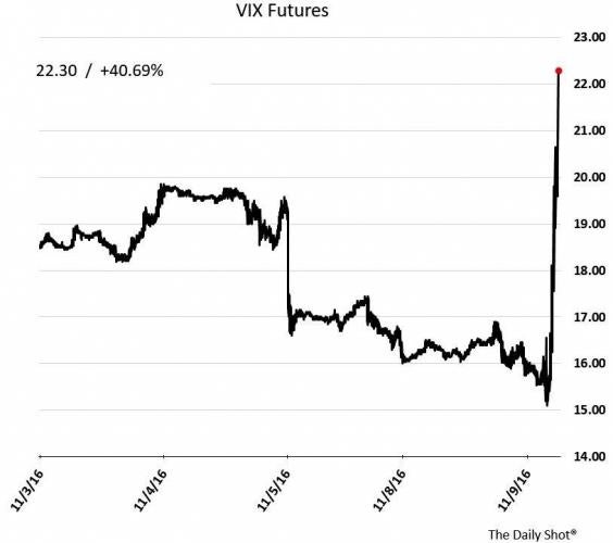 The global financial volatility index known as the VIX has soared 40 per cent.