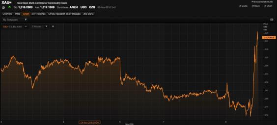 The price of Gold - a safe haven in times of stress and uncertainty - has jumped $50 to $1,317 an ounce.