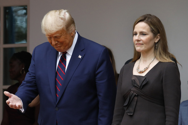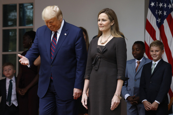 President Donald Trump introduces Judge Amy Coney Barrett as his Supreme Court Associate Justice nominee in the Rose Garden of the White House in Washington, D.C., on Saturday, Sept. 26, 2020. (Yuri Gripas/Abaca Press/TNS)President Donald Trump introduces Judge Amy Coney Barrett as his Supreme Court Associate Justice nominee in the Rose Garden of the White House in Washington, D.C., on Saturday, Sept. 26, 2020. (Yuri Gripas/Abaca Press/TNS)President Donald Trump introduces Judge Amy Coney Barrett as his Supreme Court Associate Justice nominee in the Rose Garden of the White House in Washington, D.C., on Saturday, Sept. 26, 2020. (Yuri Gripas/Abaca Press/TNS)President Donald Trump arrives with Judge Amy Coney Barrett to introduce her as his Supreme Court Associate Justice nominee in the Rose Garden of the White House in Washington, D.C., on Saturday, Sept. 26, 2020. (Yuri Gripas/Abaca Press/TNS)Family members of Judge Amy Coney Barrett arrive as President Donald Trump introduces her as his Supreme Court Associate Justice nominee in the Rose Garden of the White House in Washington, D.C., on Saturday, Sept. 26, 2020. (Yuri Gripas/Abaca Press/TNS)President Donald Trump introduces Judge Amy Coney Barrett as his Supreme Court Associate Justice nominee in the Rose Garden of the White House in Washington, D.C., on Saturday, Sept. 26, 2020. (Yuri Gripas/Abaca Press/TNS)Judge Amy Coney Barrett walks from the Oval Office to be introduced by President Donald Trump as his Supreme Court Associate Justice nominee in the Rose Garden of the White House in Washington, D.C., on Saturday, Sept. 26, 2020. (Yuri Gripas/Abaca Press/TNS)A photographer takes pictures form a roof as President Donald Trump introduces Judge Amy Coney Barrett as his Supreme Court Associate Justice nominee in the Rose Garden of the White House in Washington, D.C., on Saturday, Sept. 26, 2020. (Yuri Gripas/Abaca Press/TNS)President Donald Trump introduces Judge Amy Coney Barrett as his Supreme Court Associate Justice nominee in the Rose Garden of the White House in Washington, D.C., on Saturday, Sept. 26, 2020. (Yuri Gripas/Abaca Press/TNS)Judge Amy Coney Barrett walks from the Oval Office to be introduced by President Donald Trump as his Supreme Court Associate Justice nominee in the Rose Garden of the White House in Washington, D.C., on Saturday, Sept. 26, 2020. (Yuri Gripas/Abaca Press/TNS)President Donald Trump introduces Judge Amy Coney Barrett as his Supreme Court Associate Justice nominee in the Rose Garden of the White House in Washington, D.C., on Saturday, Sept. 26, 2020. (Yuri Gripas/Abaca Press/TNS)Attorney General William Barr departs after President Donald Trump introduced Judge Amy Coney Barrett as his Supreme Court Associate Justice nominee in the Rose Garden of the White House in Washington, D.C., on Saturday, Sept. 26, 2020. (Yuri Gripas/Abaca Press/TNS)President Donald Trump welcomes Judge Amy Coney Barrett as he introduces her as his Supreme Court Associate Justice nominee in the Rose Garden of the White House in Washington, D.C., on Saturday, Sept. 26, 2020. (Yuri Gripas/Abaca Press/TNS)Judge Amy Coney Barrett walks from the Oval Office to be introduced by President Donald Trump as his Supreme Court Associate Justice nominee in the Rose Garden of the White House in Washington, D.C., on Saturday, Sept. 26, 2020. (Yuri Gripas/Abaca Press/TNS)President Donald Trump introduces Judge Amy Coney Barrett as his Supreme Court Associate Justice nominee in the Rose Garden of the White House in Washington, D.C., on Saturday, Sept. 26, 2020. (Yuri Gripas/Abaca Press/TNS)President Donald Trump departs with first lady Melania Trump after introducing Judge Amy Coney Barrett as his Supreme Court Associate Justice nominee in the Rose Garden of the White House in Washington, D.C., on Saturday, Sept. 26, 2020. (Yuri Gripas/Abaca Press/TNS)Amy Coney Barrett. (University of Notre Dame/Zuma Press/TNS)President Donald Trump welcomes Judge Amy Coney Barrett and members of her family to introduce her as his Supreme Court Associate Justice nominee in the Rose Garden of the White House in Washington, D.C., on Saturday, Sept. 26, 2020. (Yuri Gripas/Abaca Press/TNS)President Donald Trump departs with First Lady Melania Trump after introducing Judge Amy Coney Barrett as his Supreme Court Associate Justice nominee in the Rose Garden of the White House in Washington, D.C., on Saturday, Sept. 26, 2020. (Yuri Gripas/Abaca Press/TNS)On September 24, 2020, in Jacksonville, Florida, people display placards in support of Judge Amy Coney Barrett as a potential nominee for Supreme Court Justice as supporters of President Donald Trump arrive at a campaign rally. (Paul Hennessy/SOPA Images/TNS)Judge Amy Coney Barrett walks from the Oval Office to be introduced by President Donald Trump as his Supreme Court Associate Justice nominee in the Rose Garden of the White House in Washington, D.C., on Saturday, Sept. 26, 2020. (Yuri Gripas/Abaca Press/TNS)President Donald Trump departs with first lady Melania Trump after introducing Judge Amy Coney Barrett as his Supreme Court Associate Justice nominee in the Rose Garden of the White House in Washington, D.C., on Saturday, Sept. 26, 2020. (Yuri Gripas/Abaca Press/TNS)President Donald Trump introduces Judge Amy Coney Barrett as his Supreme Court Associate Justice nominee in the Rose Garden of the White House in Washington, D.C., on Saturday, Sept. 26, 2020. (Yuri Gripas/Abaca Press/TNS)President Donald Trump departs with First Lady Melania Trump after introducing Judge Amy Coney Barrett as his Supreme Court Associate Justice nominee in the Rose Garden of the White House in Washington, D.C., on Saturday, Sept. 26, 2020. (Yuri Gripas/Abaca Press/TNS)Judge Amy Coney Barrett reacts as President Donald Trump introduces her as his Supreme Court Associate Justice nominee in the Rose Garden of the White House in Washington, D.C., on Saturday, Sept. 26, 2020. (Yuri Gripas/Abaca Press/TNS)President Donald Trump walks with Jud