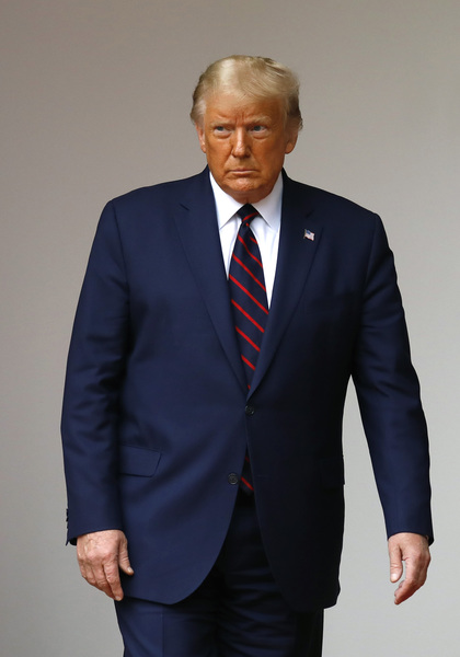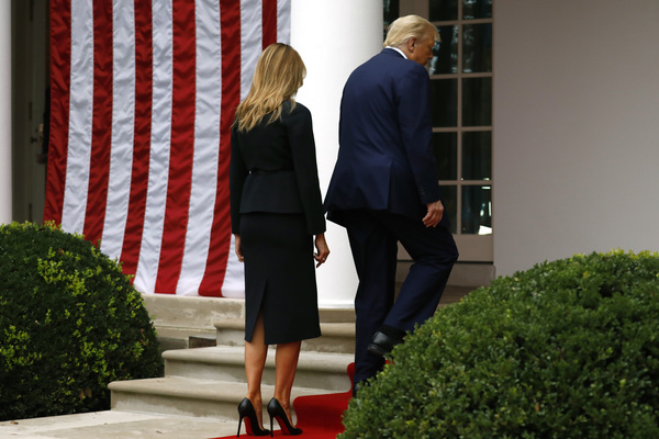 President Donald Trump departs with first lady Melania Trump, left, after introducing Judge Amy Coney Barrett as his Supreme Court Associate Justice nominee in the Rose Garden of the White House in Washington, D.C., on Saturday, Sept. 26, 2020. (Yuri Gripas/Abaca Press/TNS)