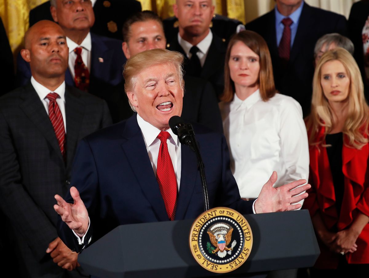 In his remarks, Trump said the U.S. Postal Service and Department of Homeland Security were "strengthening the inspection of packages coming into our country to hold back the flood of cheap and deadly fentanyl, a synthetic opioid manufactured in China."