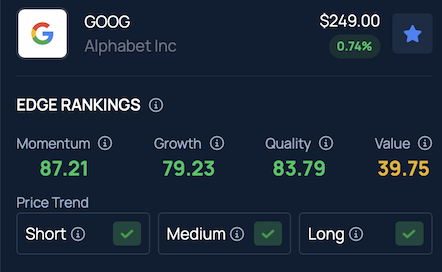 Benzinga's Edge Stock Rankings indicate that GOOG is trending positively in the short, medium and long term with further performance insights available here.