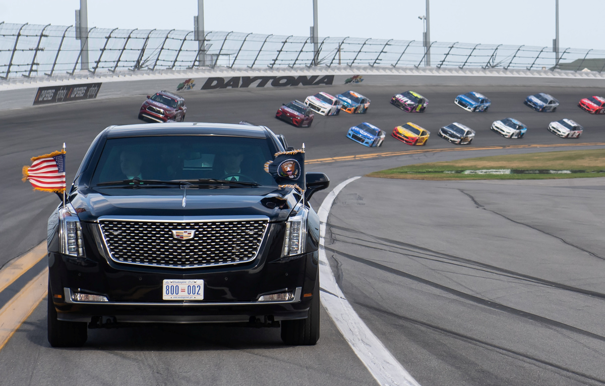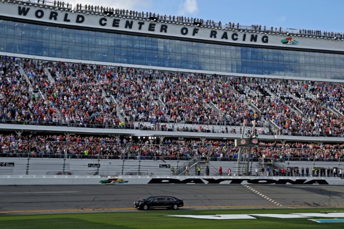 Trump, a former reality television star with a taste for showmanship, landed on Air Force One near the Daytona International Speedway. He was then driven in the presidential limousine known as "The Beast" directly onto the racetrack along with the rest of his motorcade.
