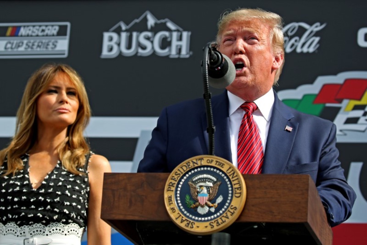 Trump's campaign planned to take advantage of the president's appearance by flying an aerial banner near the speedway and running a television ad during the Fox broadcast.