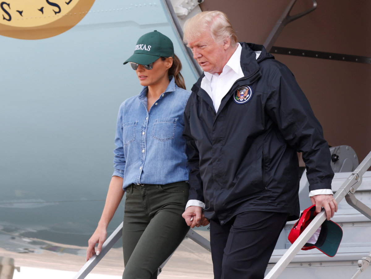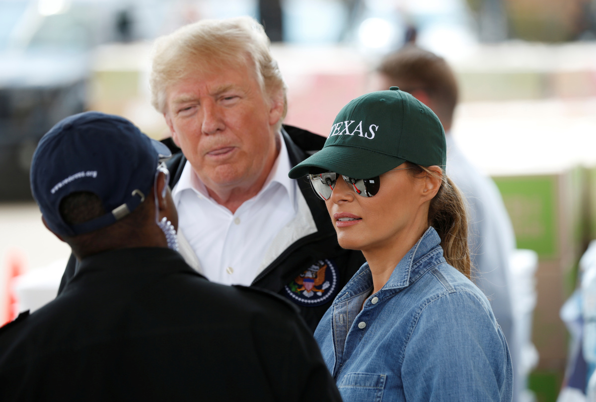 In his second Texas visit since the storm struck, the president and his wife, Melania Trump, were greeted warmly on an unannounced stop to NRG center, a convention complex converted into a facility to assist storm evacuees.