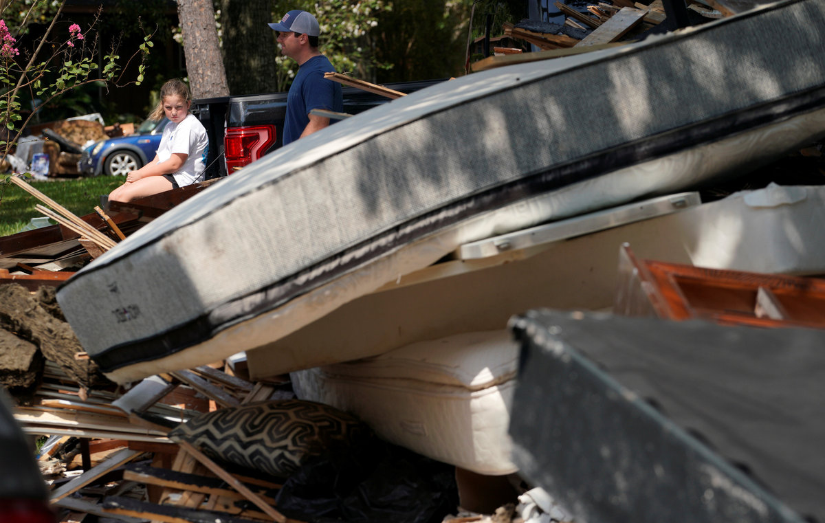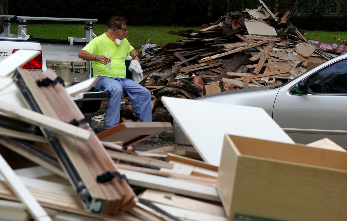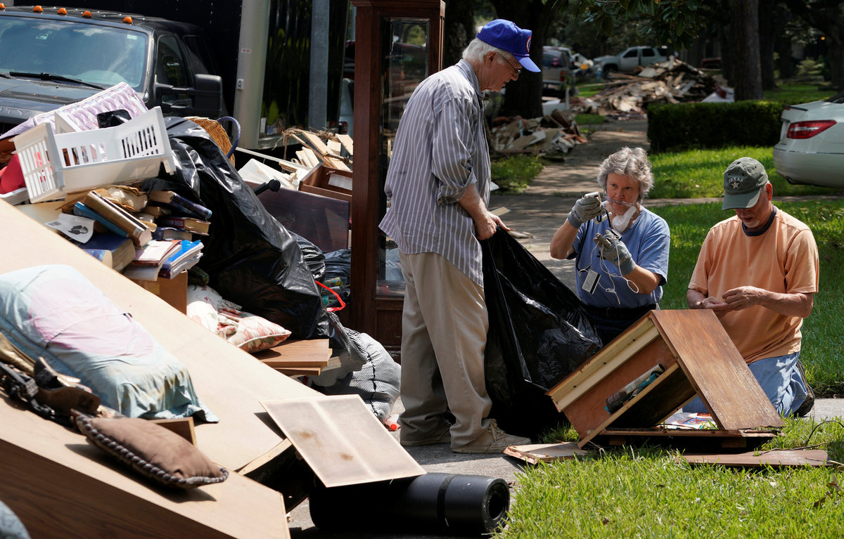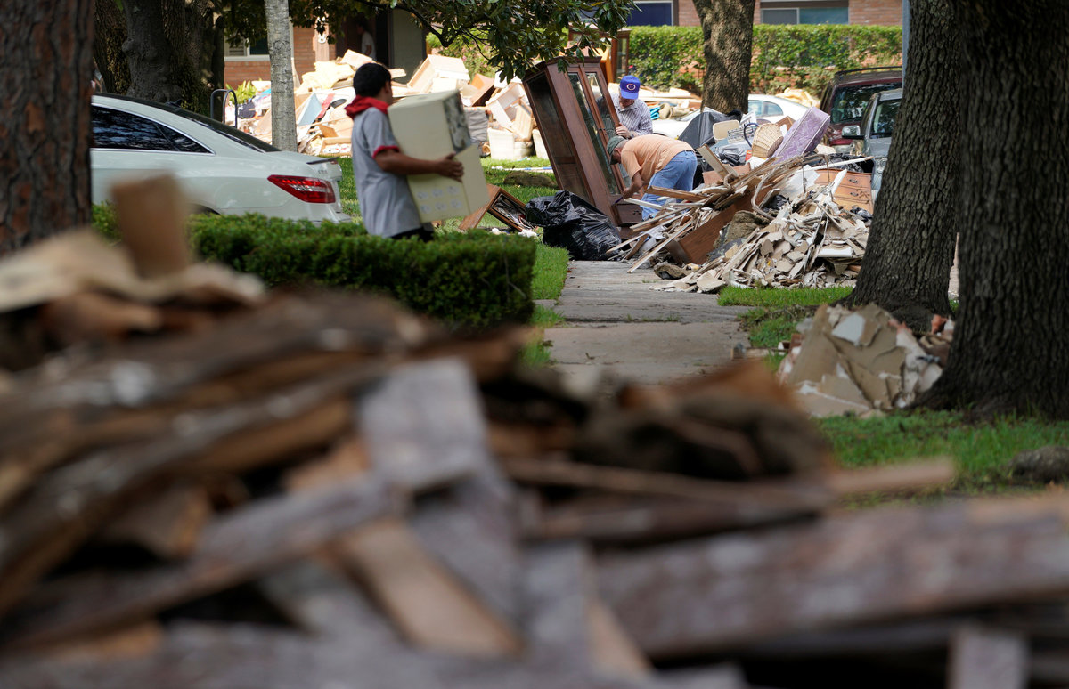 In a neighborhood in east Houston, streets were lined with 8-foot (2.4 meter) piles of soggy debris, including mattresses, carpets and other belongings ripped out of homes. Volunteers had set up shade tents with water and food and were helping residents remove the wreckage.