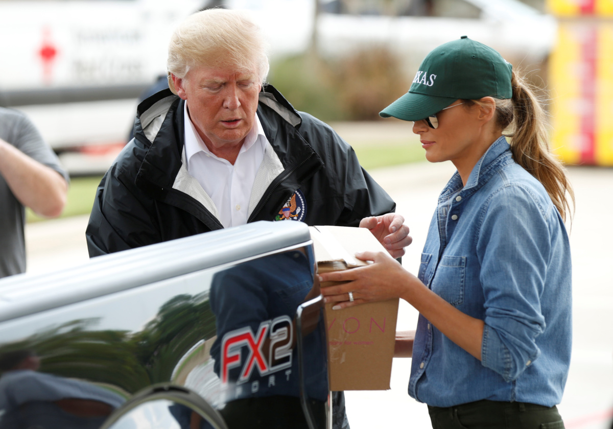 The Trumps later flew to flood-hit Lake Charles, Louisiana.