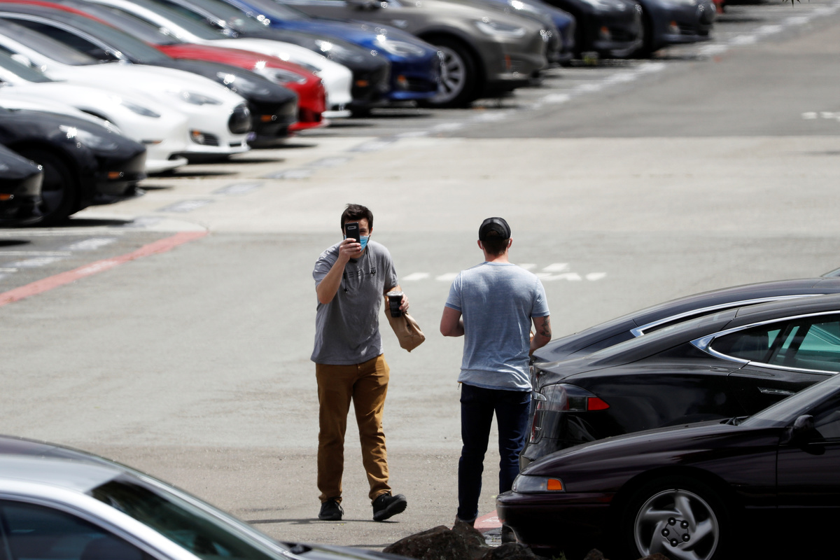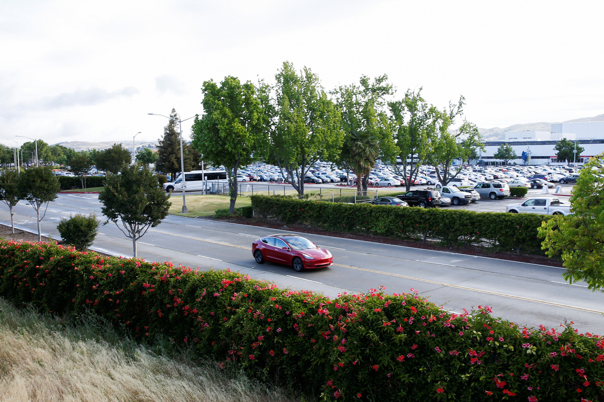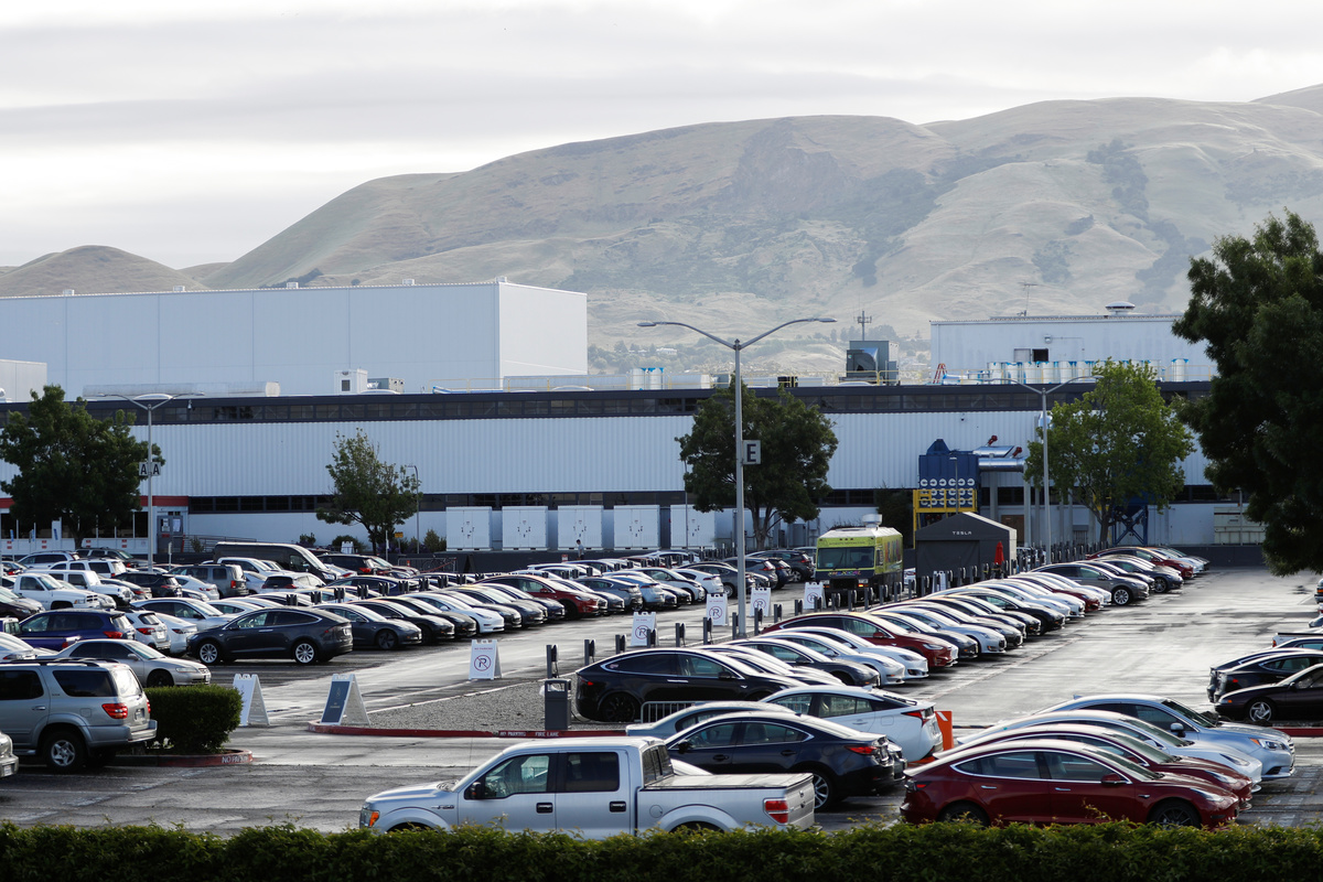At the Fremont factory's outbound logistics parking lot, where only a dozen Tesla cars were parked last week, hundreds of Tesla vehicles were seen on Tuesday.