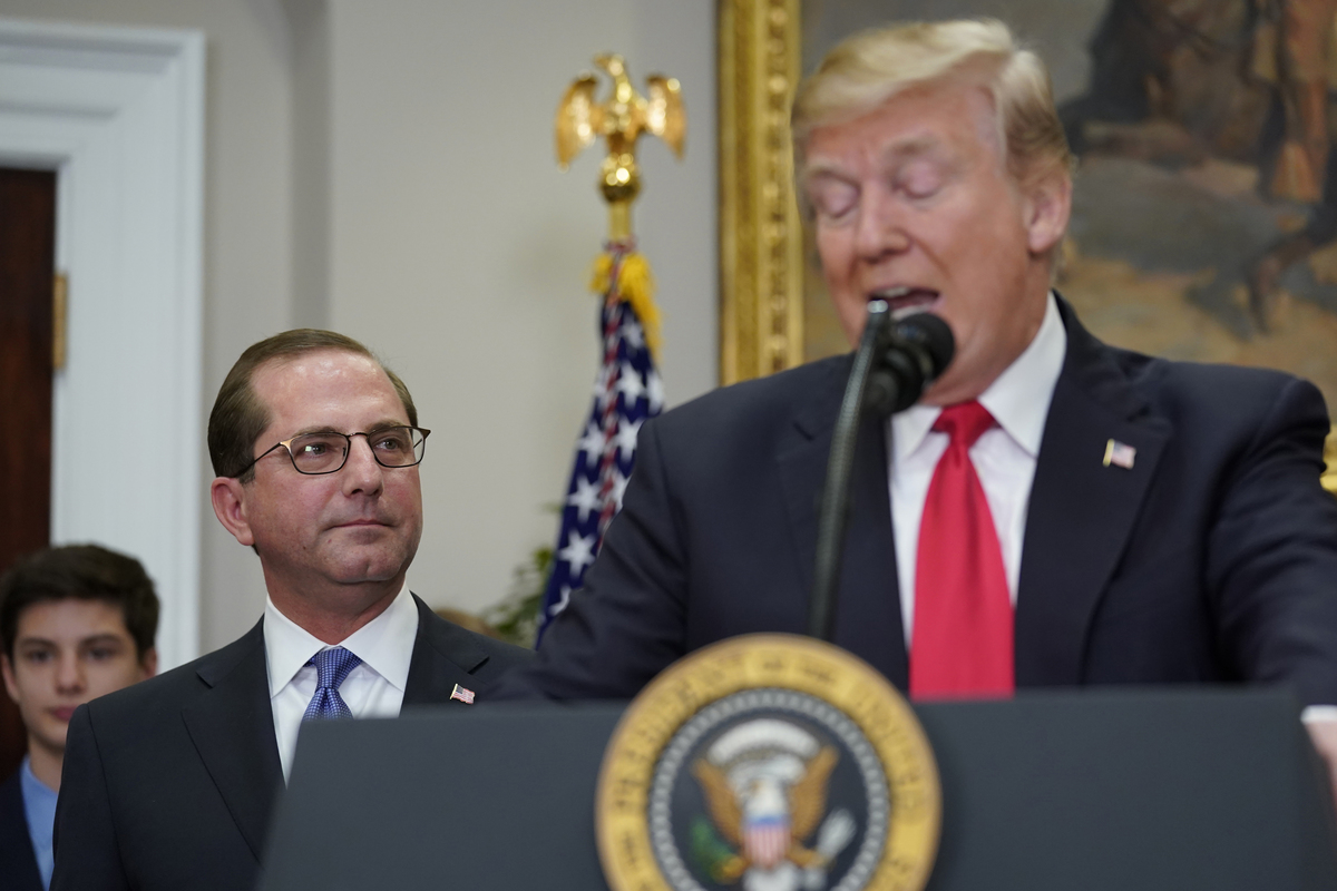 WASHINGTON (Reuters) - President Donald Trump on Monday charged the new U.S. health secretary with bringing down drug prices and to be tough on pharmaceutical companies about the widespread abuse of prescription opiates.