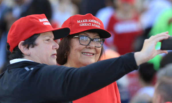 Intermittent chants of "lock her up" and "USA" began about 80 minutes before Trump was scheduled to take the stage. The arena, which seats 5,000, was full, plus there were at least another 1,000 people standing in the area in front of the stage.
