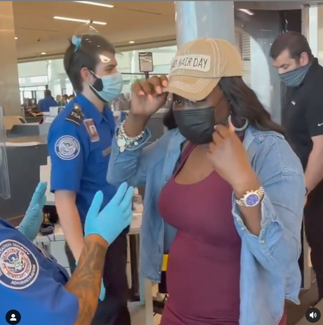 She wrote in the caption of the video that she reposted, “Sis was feeling herself and forget that you can NOT be CAPPIN coming through TSA...Well, I’m so grateful that she did.”