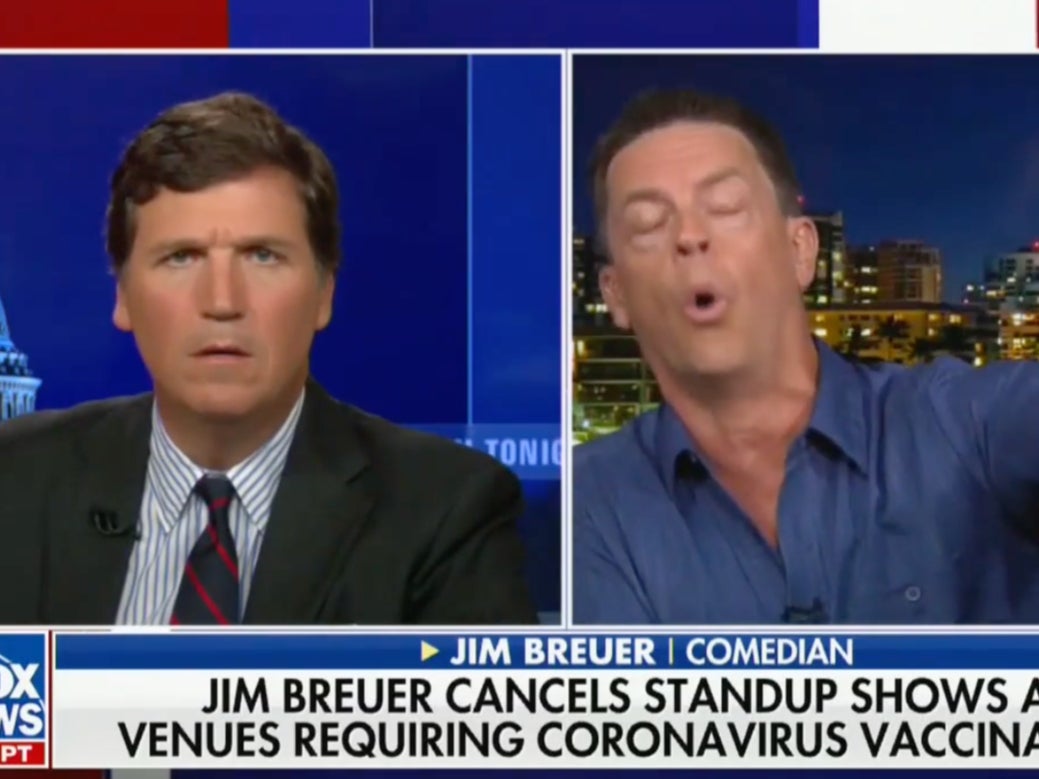 “If you can force people to get the vaccine, what can’t you do? That’s a question Jim Breuer appears to be thinking about,” Tucker Carlson remarked while introducing the comedian, who had “just announced he won’t be performing at any venue that requires patrons to be vaccinated.”