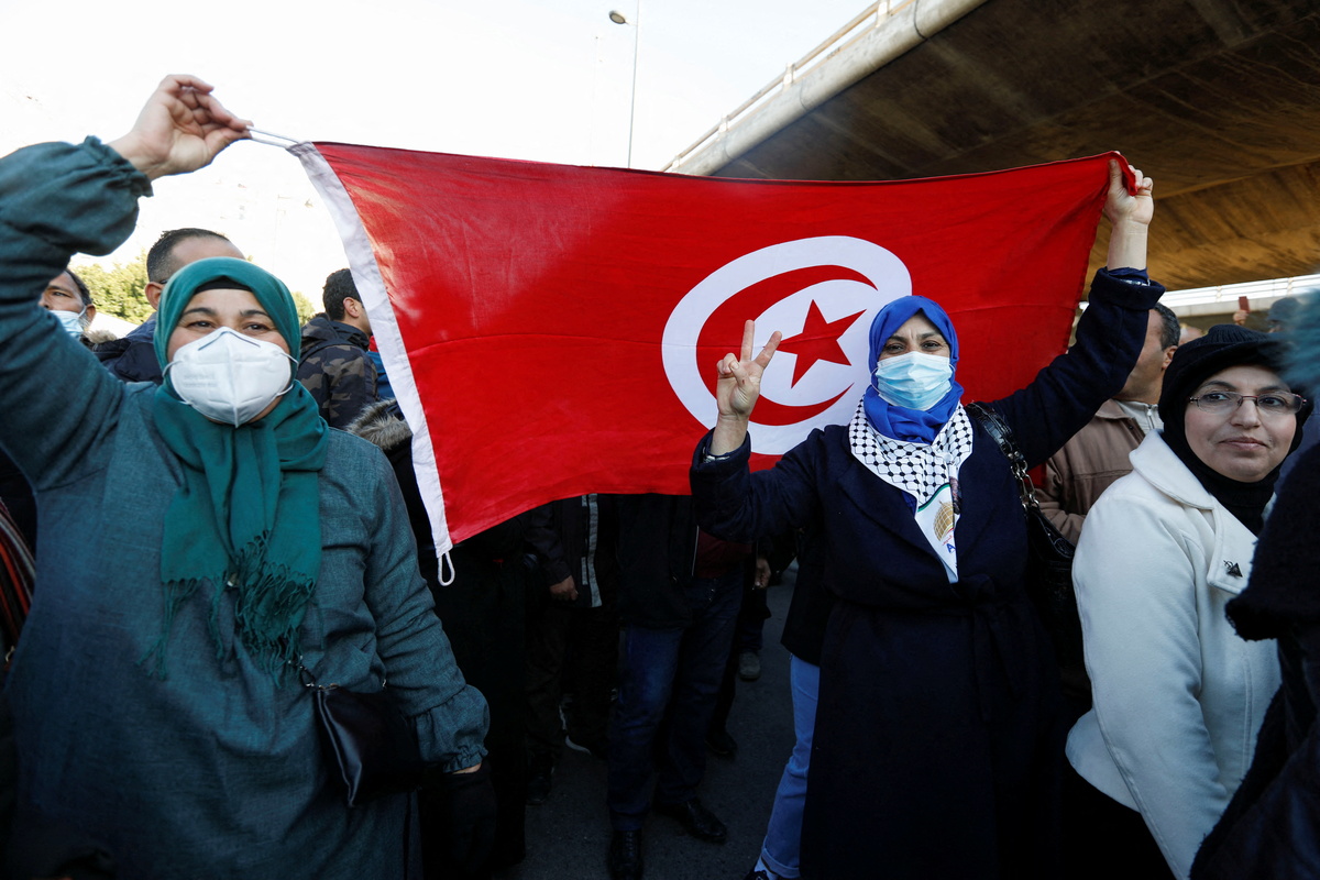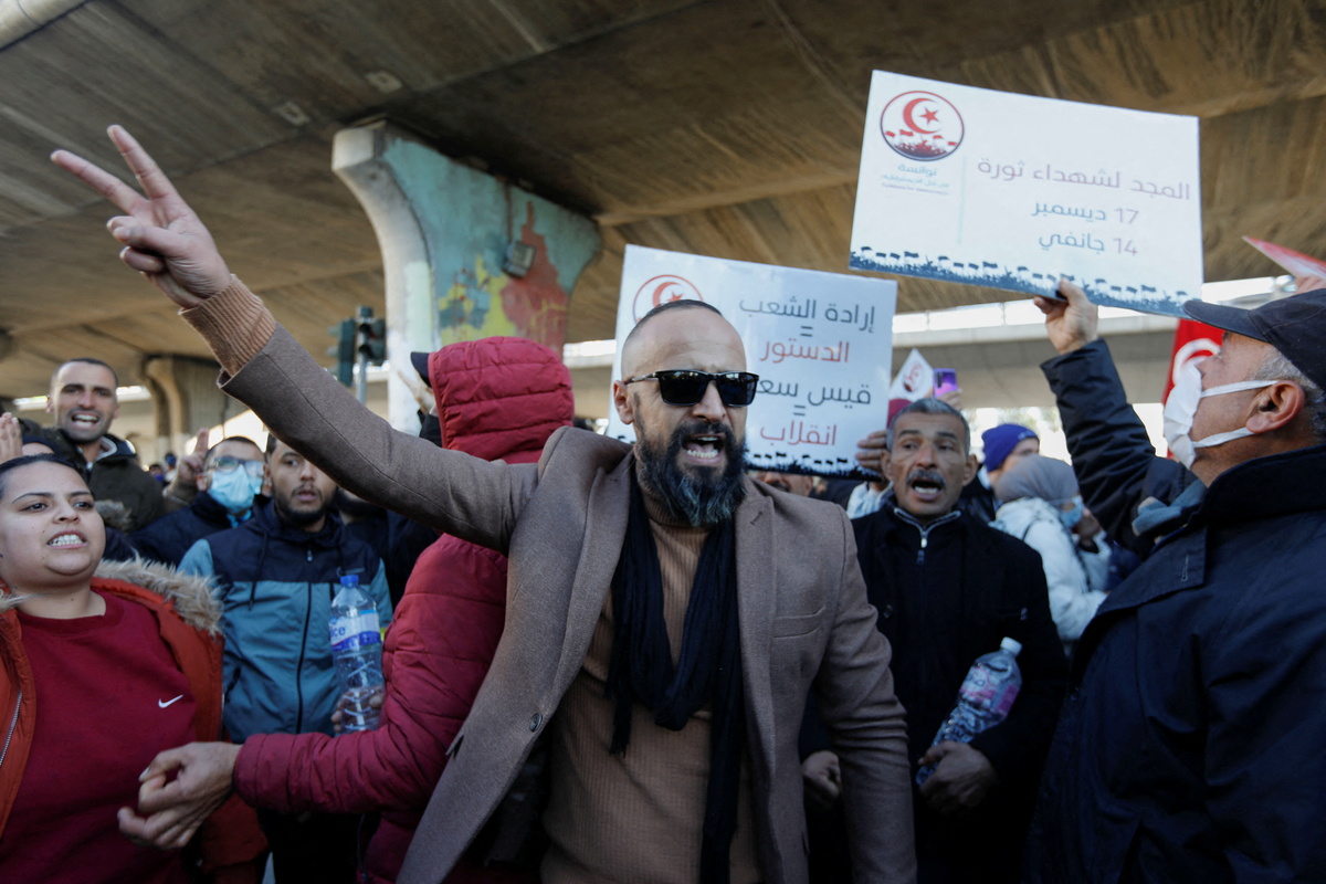 Called for the anniversary of the uprising that toppled autocrat Zine al-Abidine Ben Ali a decade ago, it was the first protest since Saied announced a long-awaited road map on Monday that keeps parliament suspended for another year.
