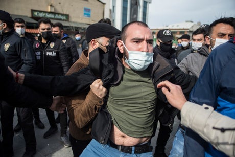 The independent Evrensel newspaper reported that five people were detained from their homes on Wednesday for writing on walls in support of the Bogazici students. On Thursday, a group of about 15 people gathered outside Istanbul’s main courthouse where the five were being questioned. Scuffles broke out between the group and police who called on them to disperse, Evrensel reported.