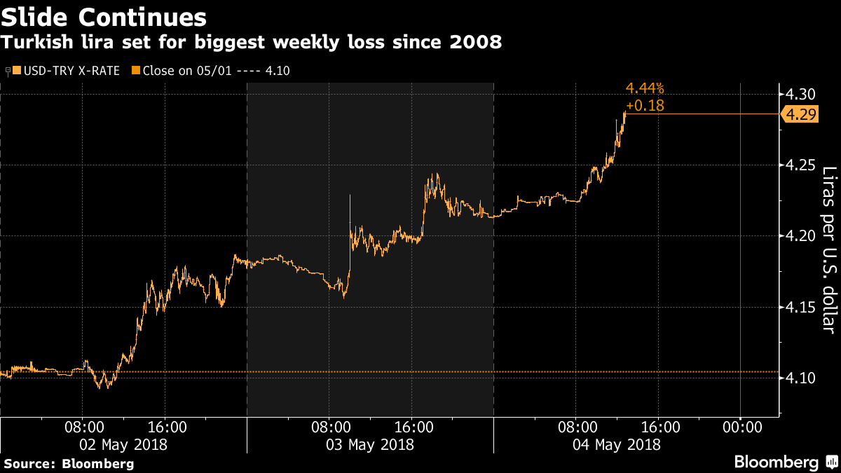 Turkey’s economy remains one of the most exposed to a stronger dollar, which is pushing higher against most global peers ahead of jobs data in the U.S. on Friday. Turkey’s current-account deficit, at more than 5 percent of output, leaves the lira dependent on foreign capital inflows, while inflation continues to run in the double digits.