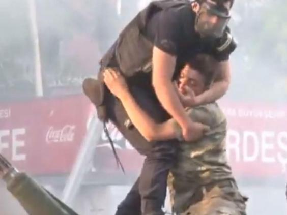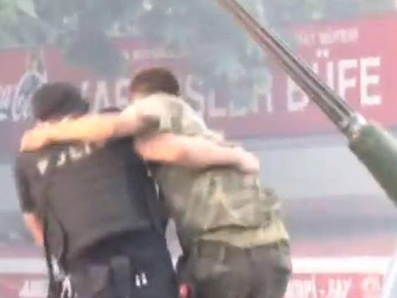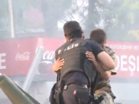 These images show the moments a Turkish policeman came to aid of pro-coup soldier.