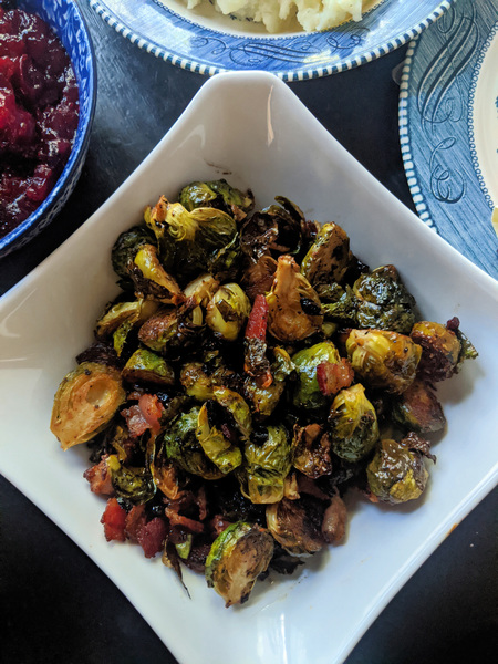 For the dishes you insist on making from scratch, Grant suggests making whatever you can a few days in advance. Brussels sprouts and potatoes, for example, can be blanched beforehand and stored in the fridge, so all you have to do is throw them in hot water on that Thursday. Also, if you're tackling a new recipe, practice it a couples of times beforehand until you've got it down pat.