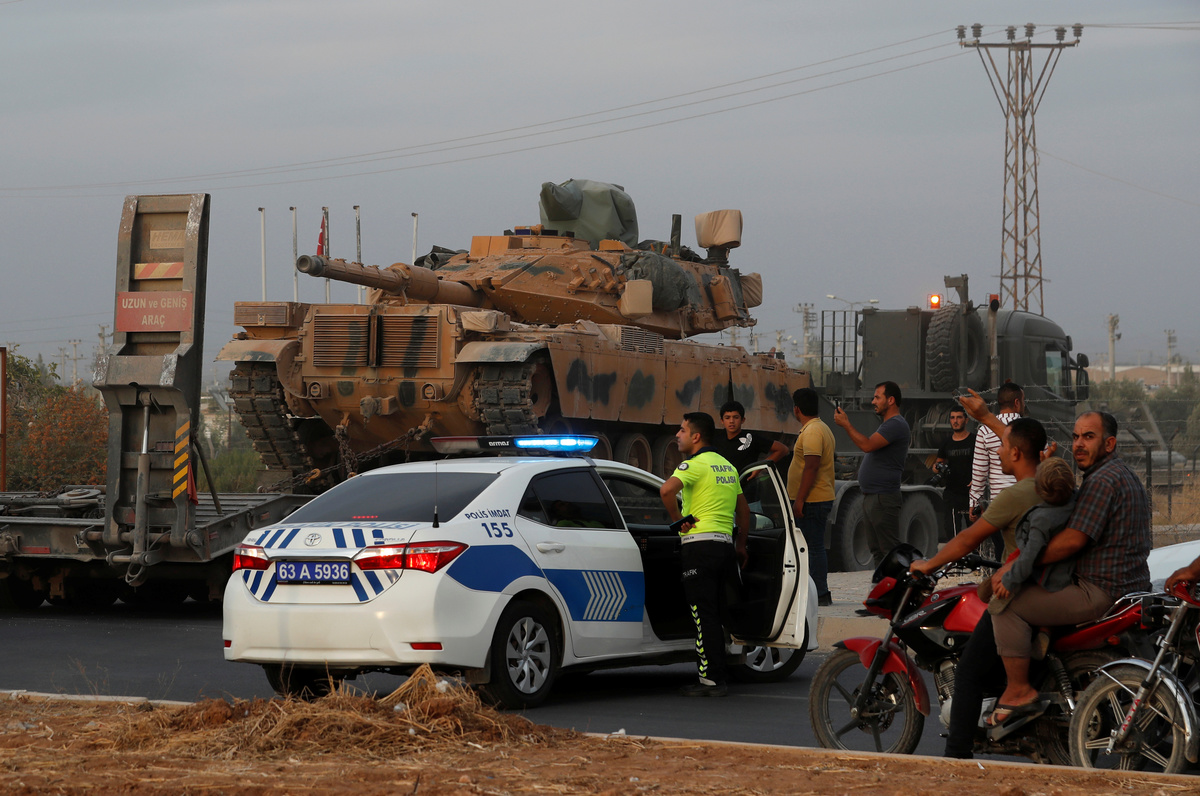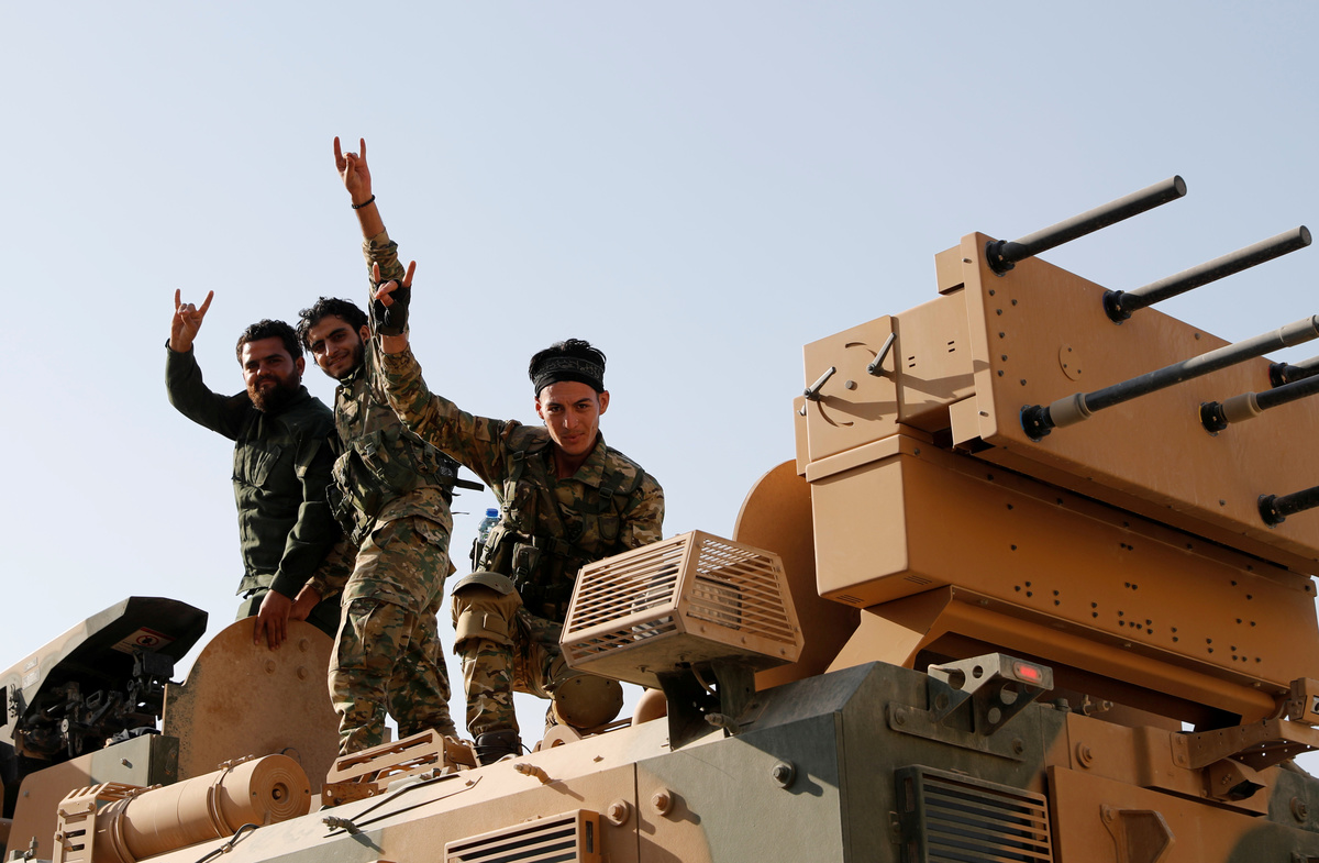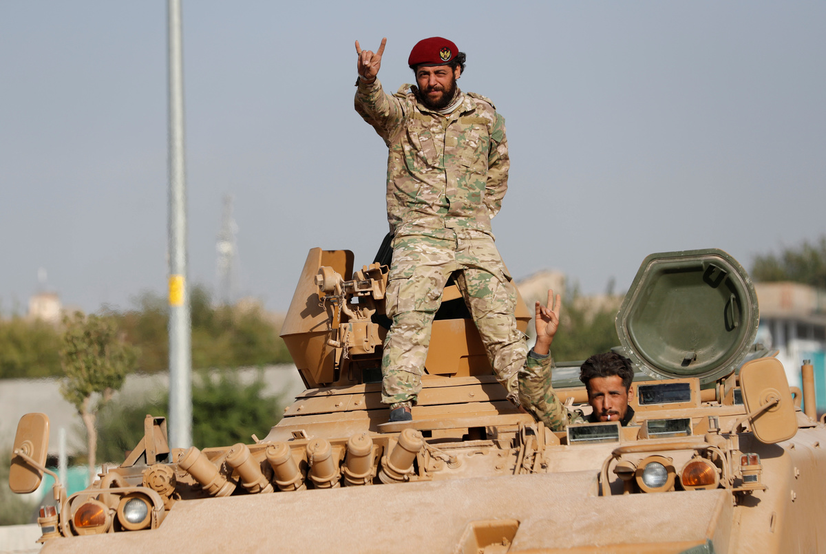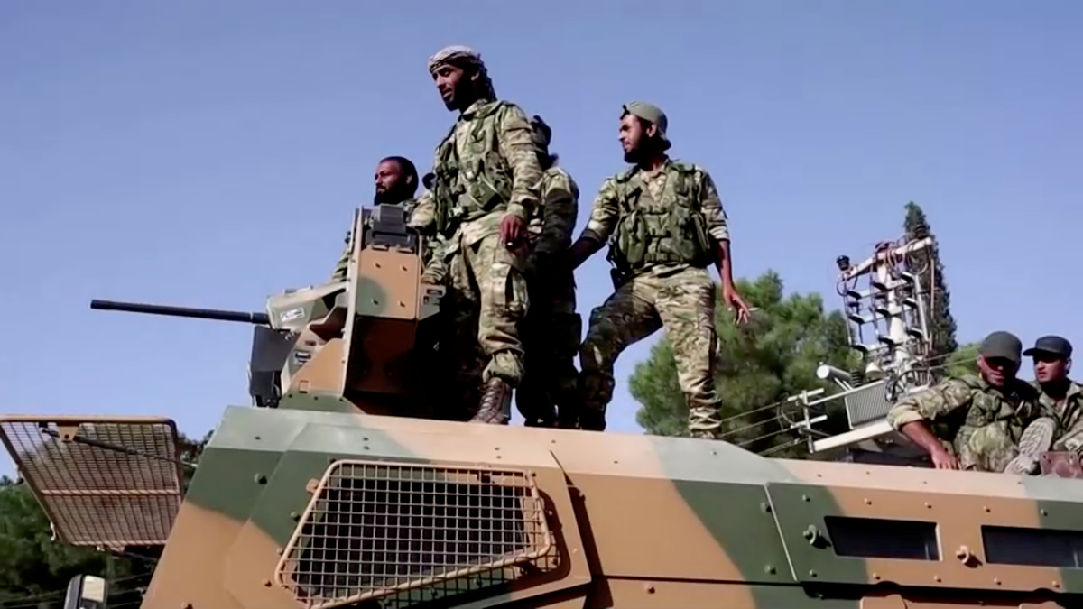 A convoy of 20 armoured vehicles carrying Turkish-allied Syrian rebels entered Syria from Ceylanpinar. Some made victory signs, shouting "Allahu akbar" (God is greatest) and waving Syrian rebel flags as they advanced towards Ras al Ain.