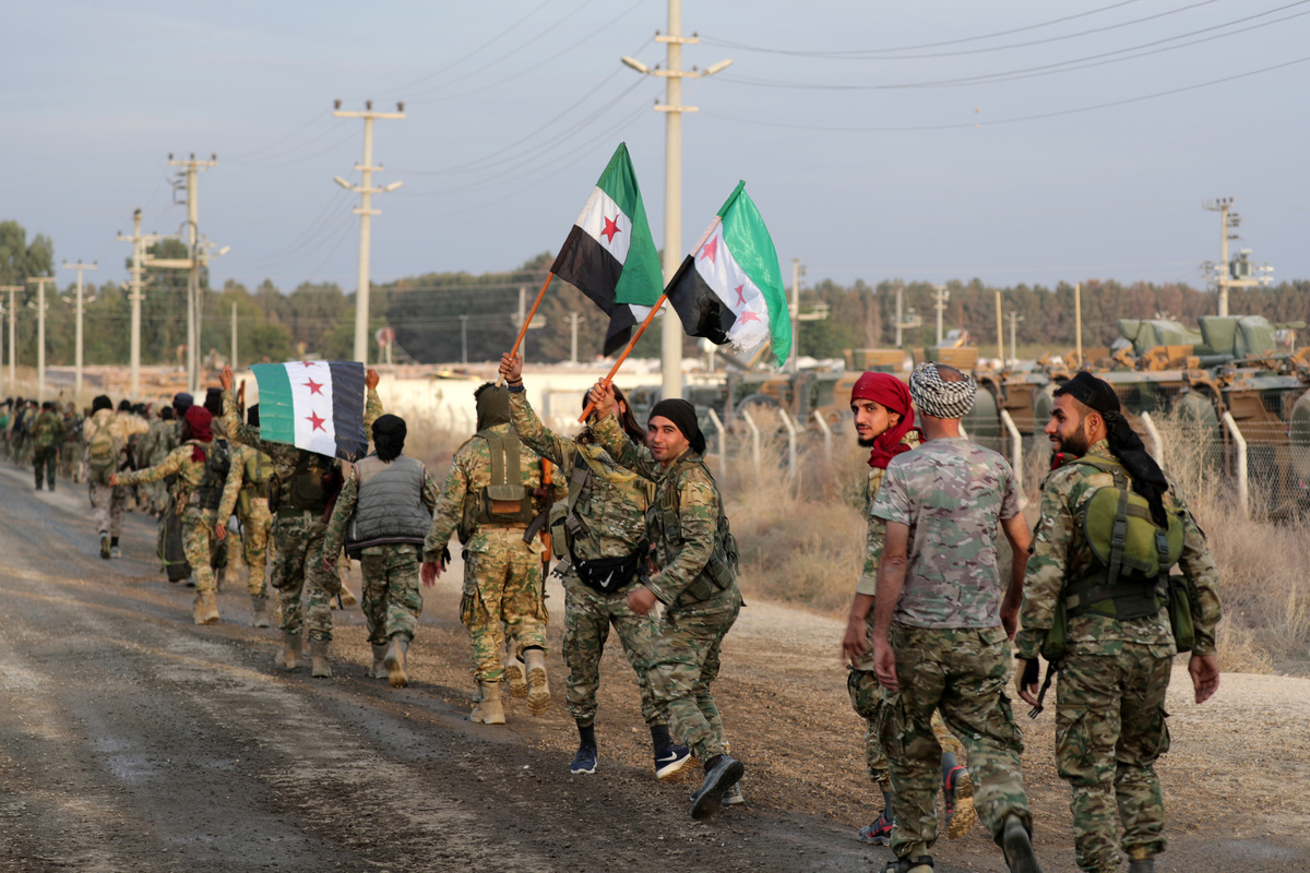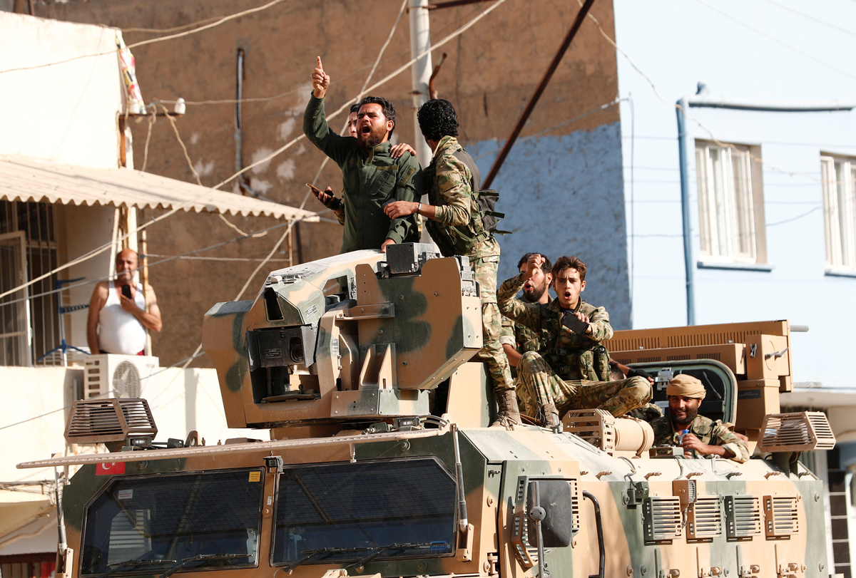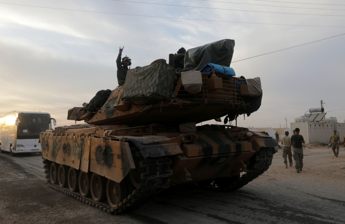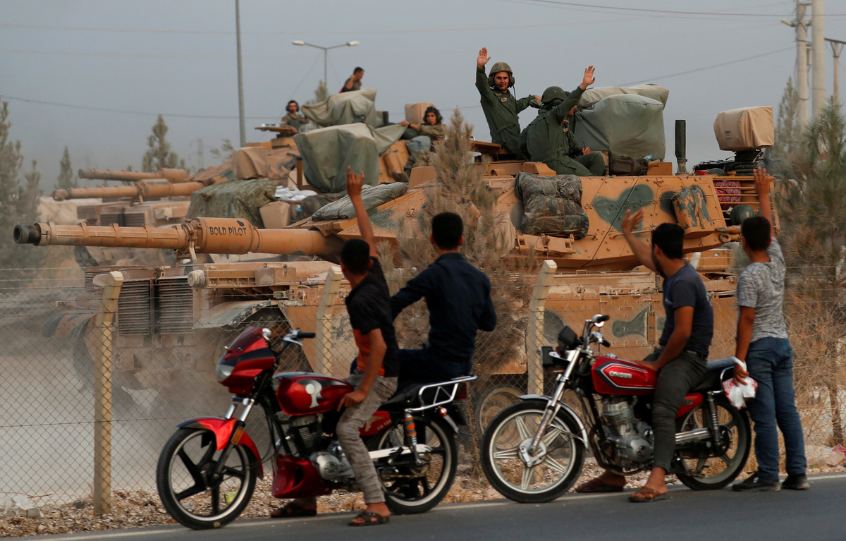 A convoy of 20 armoured vehicles carrying Turkish-allied Syrian rebels entered Syria from Ceylanpinar. Some made victory signs, shouting "Allahu akbar" (God is greatest) and waving Syrian rebel flags as they advanced towards Ras al Ain.