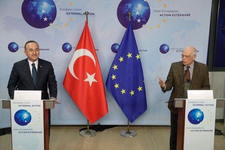At a meeting with EU foreign policy chief Josep Borrell, Foreign Minister Mevlut Cavusoglu said they would discuss a joint “migration declaration” that Turkey is proposing and prepare for a conference on developments in the eastern Mediterranean, where Turkish and Greek warships have faced off.