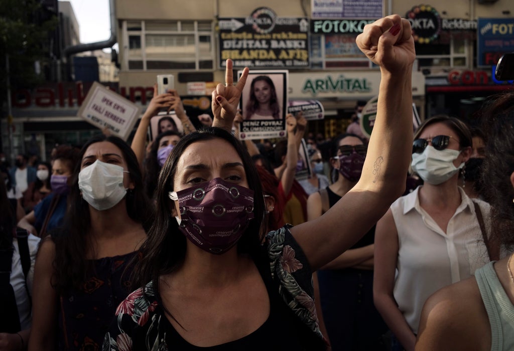 Hundreds of women demonstrated in Istanbul later Thursday, holding banners that said they won't give up on the Council of Europe’s Istanbul Convention. “It's not over for us,” one read. Similar protests were held in other Turkish cities.