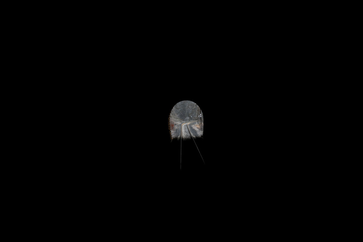 On the way it passes through farmland, hills and woods, crossing rivers swollen by snow melting in the spring sunshine and passing through long dark tunnels carved through mountains.
