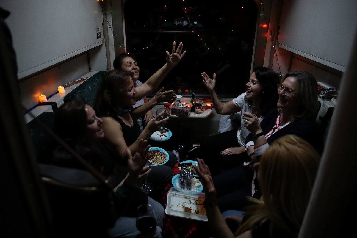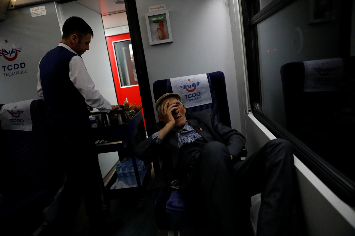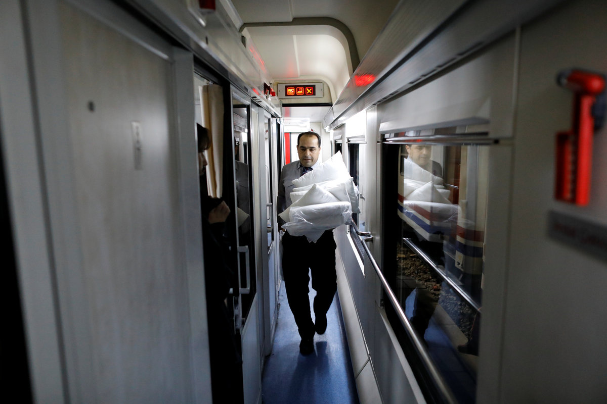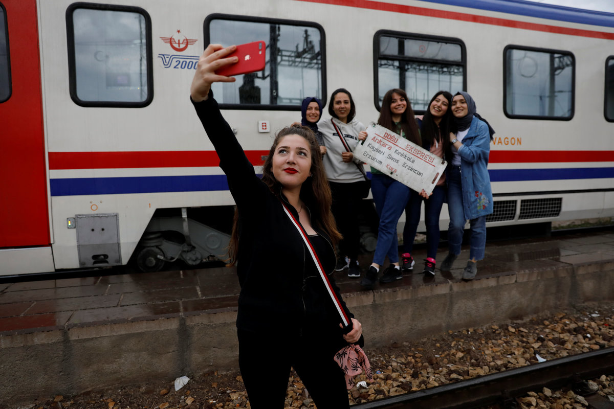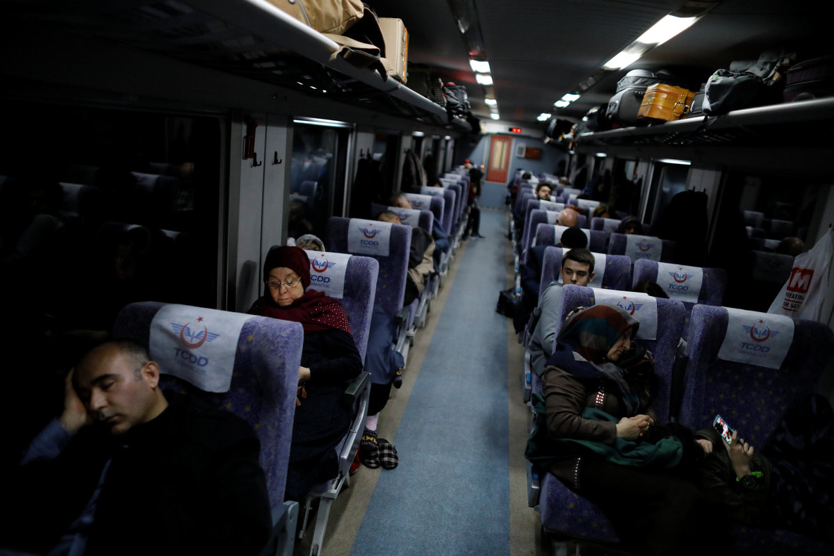 A train waits as the Eastern Express departs a station in Sivas province en route from Kars to Ankara, Turkey, February 7, 2018. REUTERS/Umit BektasA man works in his atelier in Divrigi, a town in the central Anatolian city of Sivas, Turkey, March 28, 2018. REUTERS/Umit Bektas Passengers chat on board the Eastern Express travelling through Sivas province en route from Ankara to Kars, eastern Turkey, February 6, 2018. REUTERS/Umit Bektas A worshipper prays outside a mosque in the central Anatolian city of Kayseri, Turkey, March 26, 2018. REUTERS/Umit Bektas Busra Korkmaz (L), 20, Ozlem Ozderya (R), 20 and Berfin Abadan (R top), 21, chat onboard the Eastern Express travelling through Kayseri province en route from Ankara to Kars, Turkey, April 9, 2018. REUTERS/Umit Bektas The church of the Holy Mother of God, also known as the Cathedral, stands at the historical site of Ani, in Kars province, Turkey, February 8, 2018. Ani was once the capital of a medieval Armenian kingdom that covered much of present day Armenia and eastern Turkey. REUTERS/Umit Bektas People walk along a street in the central Anatolian city of Kayseri, Turkey, March 26, 2018. REUTERS/Umit Bektas Garra rufa obtusas, also known as "doctor fish", swim around the face of a man as he relaxes in a hot spa pool in Kangal, 105 kilometres south of the central Anatolian city of Sivas, Turkey, March 27, 2018. REUTERS/Umit Bektas Worshippers read the Quran in a mosque in the eastern Anatolian city of Erzurum, Turkey, April 13, 2018. REUTERS/Umit Bektas Passengers dance during a stop at Erzurum station as they travel from Ankara to Kars on the Eastern Express, Turkey, February 7, 2018. REUTERS/Umit Bektas Sibel Uysal, 20, poses for a selfie with her friends before the Eastern Express departs from Ankara province en route from Ankara to Kars, Turkey, April 9, 2018. REUTERS/Umit Bektas Mine Nur, 28, hugs Huseyin Emre Sen, 29, after he proposed to her on board the Eastern Express travelling through Kayseri province en route from Ankara to Kars, Turkey, April 9, 2018. "We love travelling, so this suits us perfectly. This is a short demo of a life-long journey together," said Emre. REUTERS/Umit Bektas A man looks out from Ebu'l Manuchehr Mosque at the historic ruins of Ani, in Kars province, Turkey, February 8, 2018. The ancient city of Ani was once the capital of a medieval Armenian kingdom that covered much of present day Armenia and eastern Turkey. REUTERS/Umit Bektas Ensar Coskun cooks food for customers in his restaurant in Erzurum, Turkey, April 12, 2018. REUTERS/Umit Bektas A conductor walks along a car as he delivers pillows to passengers on the Eastern Express in Ankara province en route from Ankara to Kars in Turkey, February 6, 2018. REUTERS/Umit BektasPassengers rest on board the Eastern Express travelling through Sivas province en route from Ankara to Kars, eastern Turkey, February 6, 2018. REUTERS/Umit Bektas Men play a board game in Divrigi, a town in the central Anatolian city of Sivas, Turkey, March 28, 2018. REUTERS/Umit Bektas A general view of Kayseri, Turkey, March 26, 2018. REUTERS/Umit Bektas A man makes a phonecall on board the Eastern Express travelling through Sivas province en route from Ankara to Kars, Turkey, April 9, 2018. REUTERS/Umit Bektas Passengers listen to music on board the Eastern Express travelling through Sivas province en route from Ankara to Kars, eastern Turkey, February 6, 2018. REUTERS/Umit Bektas A man looks out of a window on board the Eastern Express as he travels from Kars to Ankara, near Erzurum, Turkey, March 29, 2018. REUTERS/Umit Bektas A man sleeps on board the Eastern Express travelling through Sivas province en route from Ankara to Kars, Turkey, April 9, 2018. REUTERS/Umit Bektas The opening of a railway tunnel is seen from the Eastern Express near the eastern Anatolian city of Erzincan, Turkey, February 7, 2018. REUTERS/Umit Bektas Swings stand at the Bagistas train station near the eastern Anatolian city of Erzincan, Turkey, March 28, 2018. REUTERS/Umit Bektas