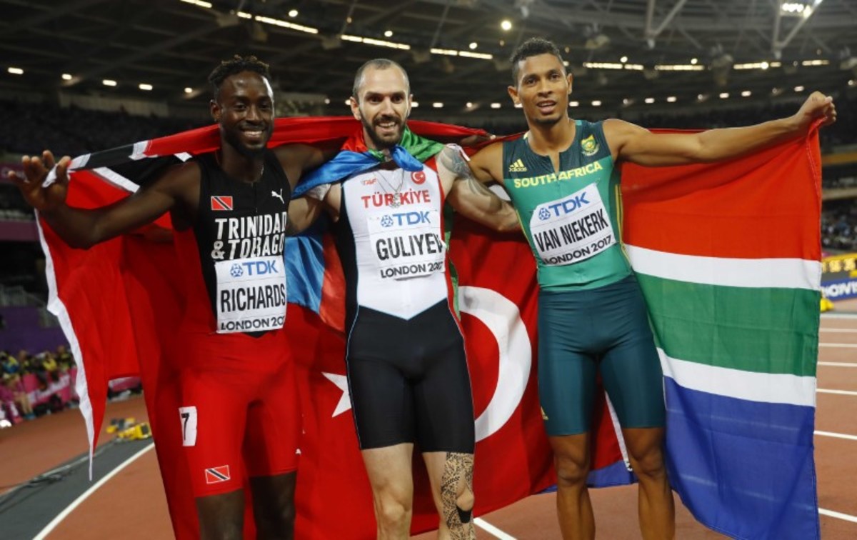 LONDON (Reuters) - Ramil Guliyev, representing Turkey after switching allegiance from Azerbaijan, pulled off a shock 200 metres victory at the World Championships on Thursday, edging an emotional favourite Wayde van Niekerk into second place in a blanket finish.
