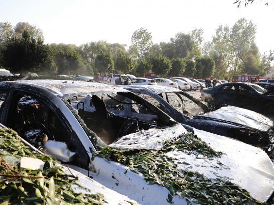 The blast damaged at least four cars in the parking area and shattered glass panels inside the building, which is on the outskirts of the city.