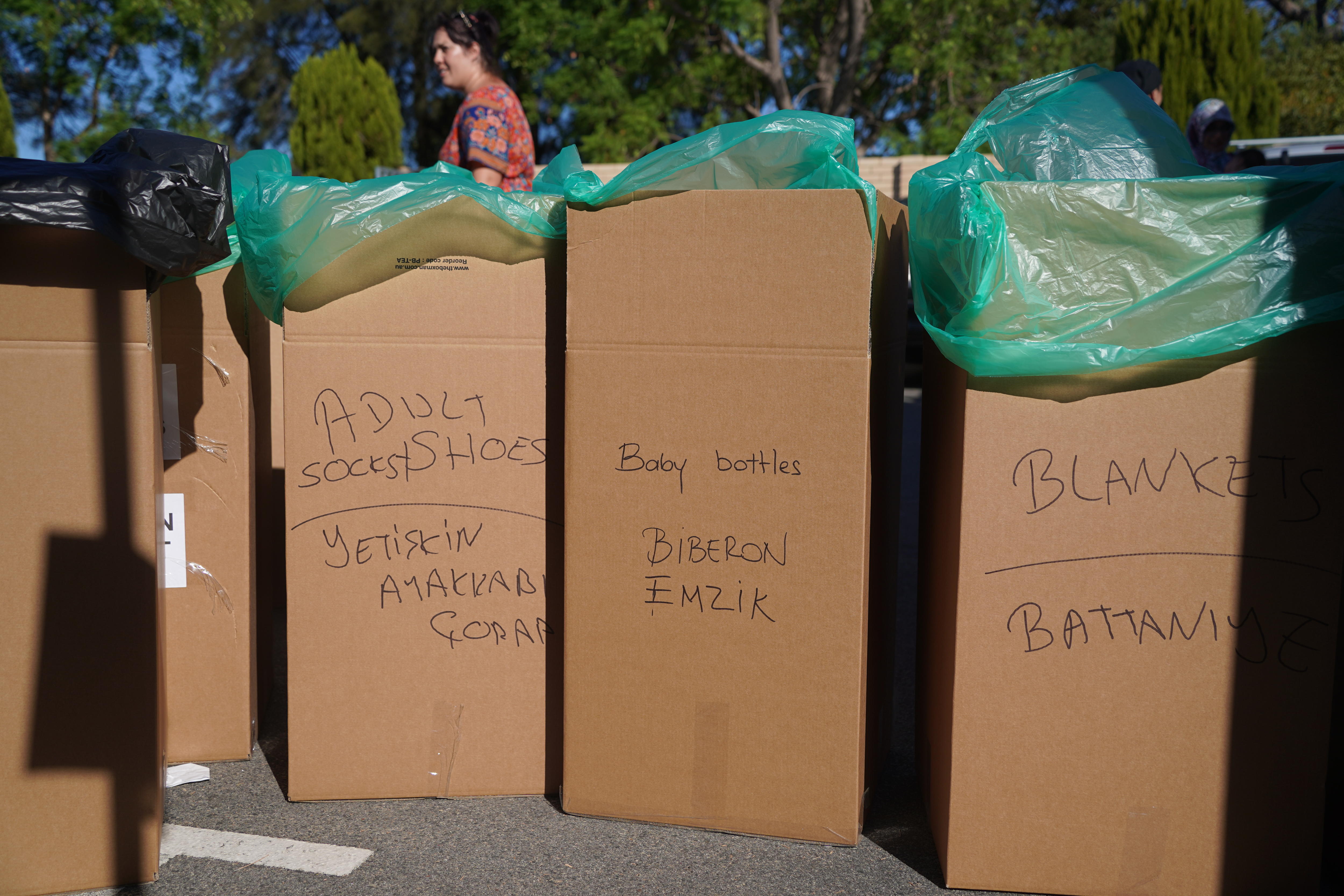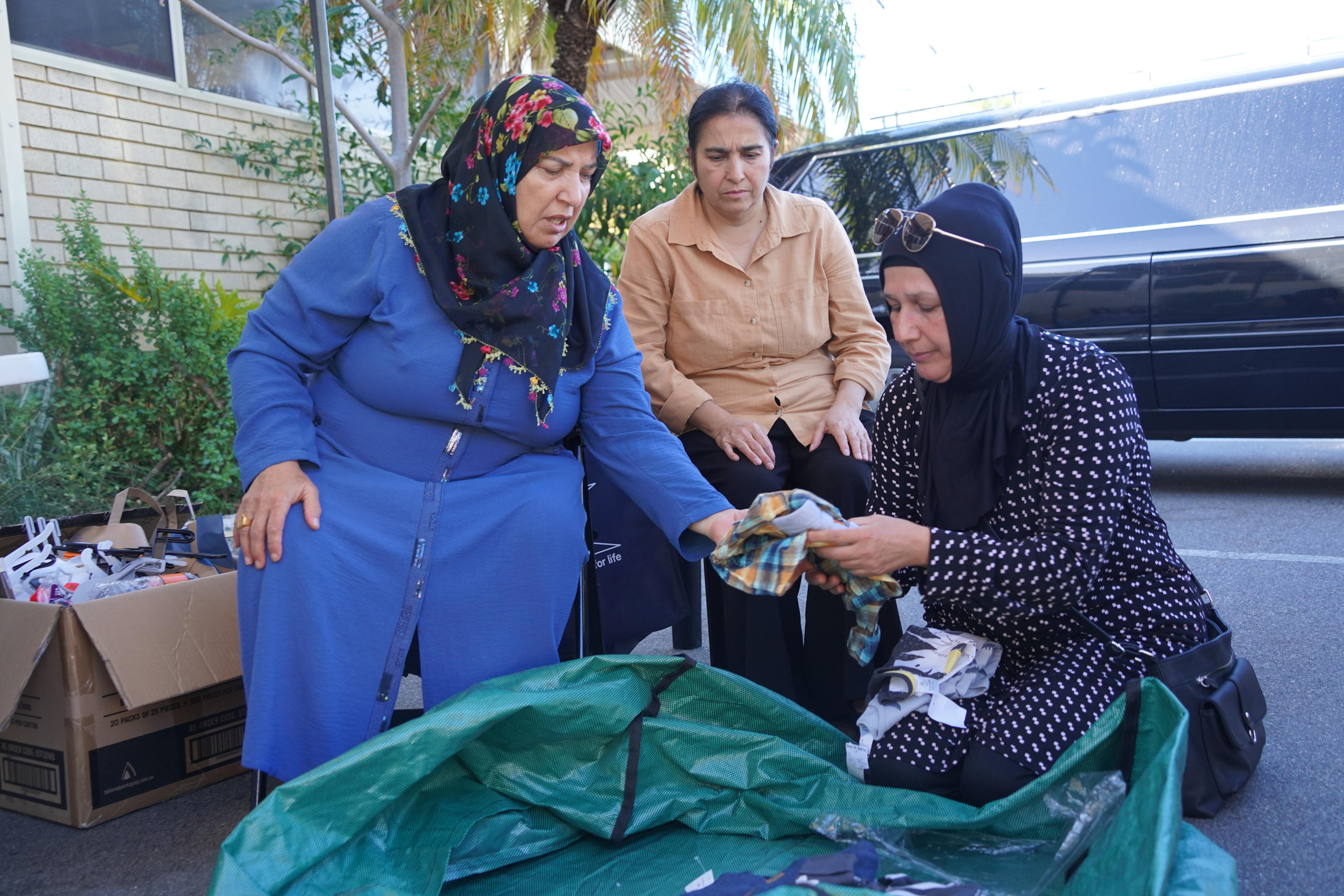 At a mosque south-east of Perth, people pack blankets, nappies, and winter clothes into boxes.