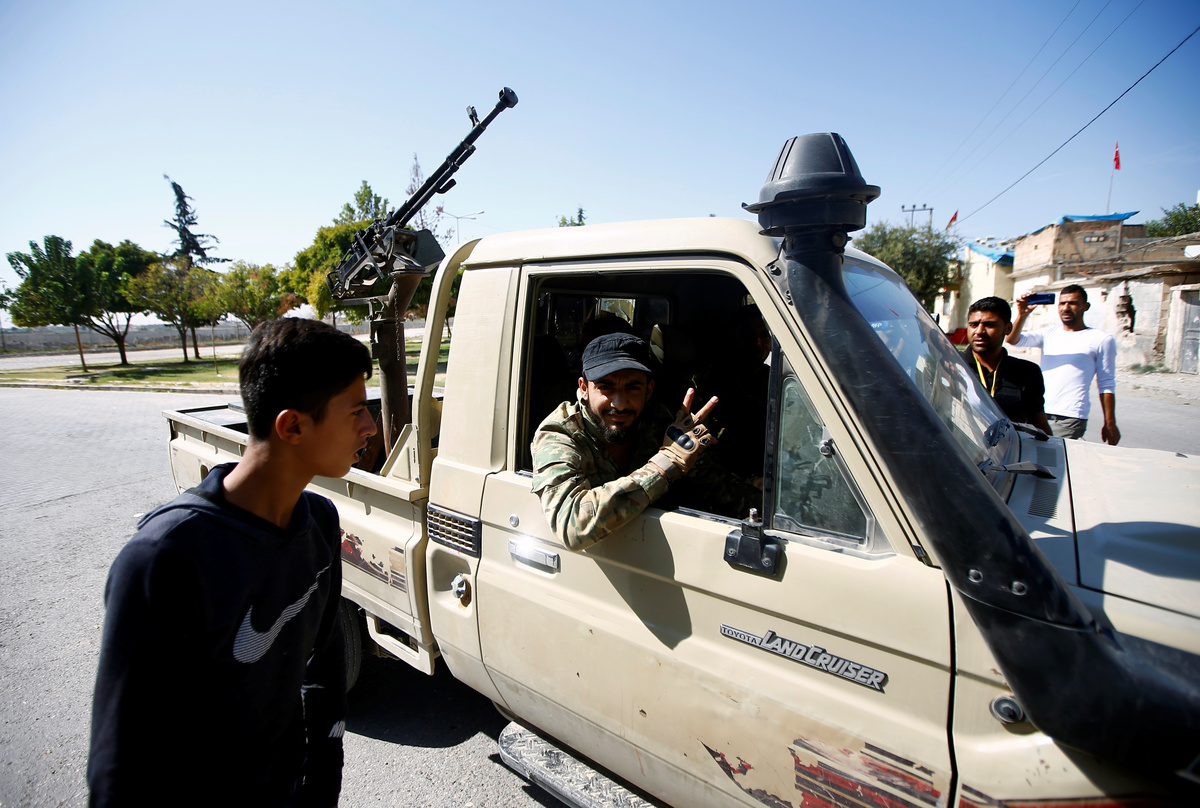 In Akcakale on the Turkish side of the border, around 100 people waved Turkish flags and sounded car horns as they celebrated reports of Turkish-led forces seizing Tel Abyad, a Reuters news team reported.