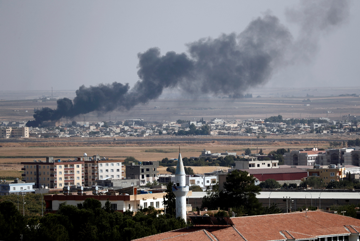 A Syrian Kurdish politician told Reuters the SDF and Syrian government were in talks at a Russian airbase on how to halt Turkey's attack, and Syrian state media said Syrian soldiers were being sent north to confront the offensive.