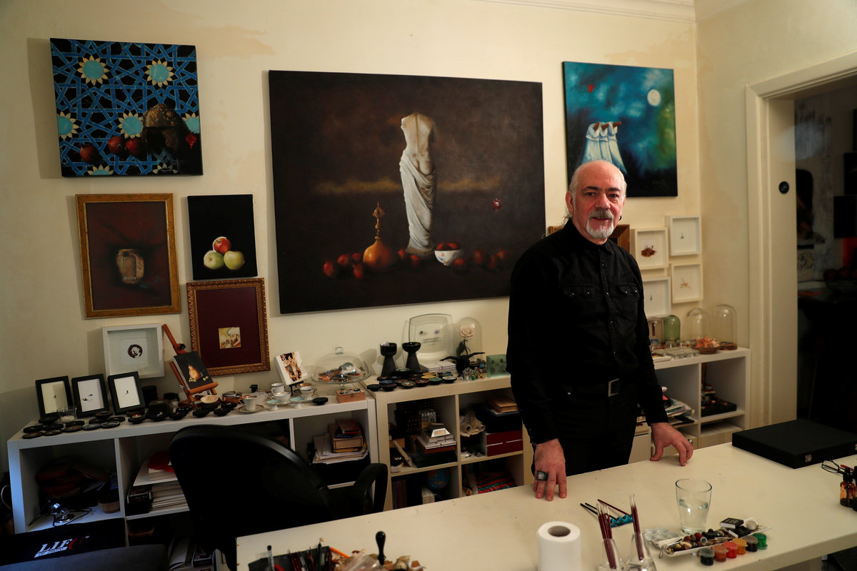Turkish micro artist Hasan Kale poses at his office during an interview with Reuters in Istanbul, Turkey, November 27, 2017. Picture taken November 27, 2017. REUTERS/Murad Sezer