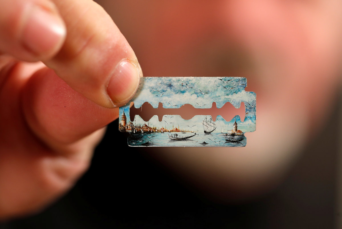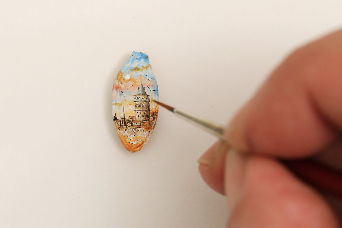 A micro-artist renowned as Turkey's Microangelo, a pun on Italian Renaissance master Michelangelo, Kale paints scenes from Istanbul on miniature objects or even food particles.