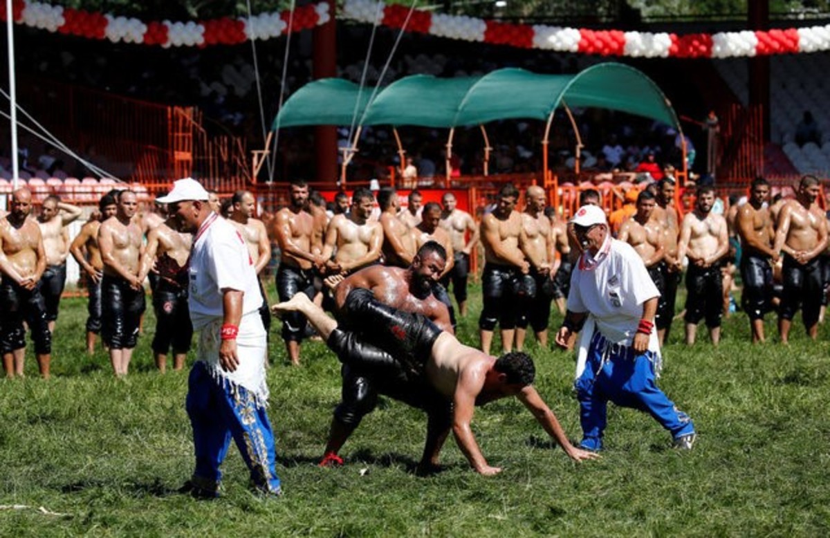EDIRNE, Turkey (Reuters) - Some 2,200 oil wrestlers began fighting bouts at a stadium in the northwestern Turkish city of Edirne on Friday, competing to win a golden belt in a contest dating back to the 14th Century.