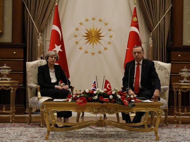 Ms May met the Turkish premier in Ankara on a one-day visit in January last year, when they agreed a £100m defence deal that helped develop fighter jets for the Turkish air force.