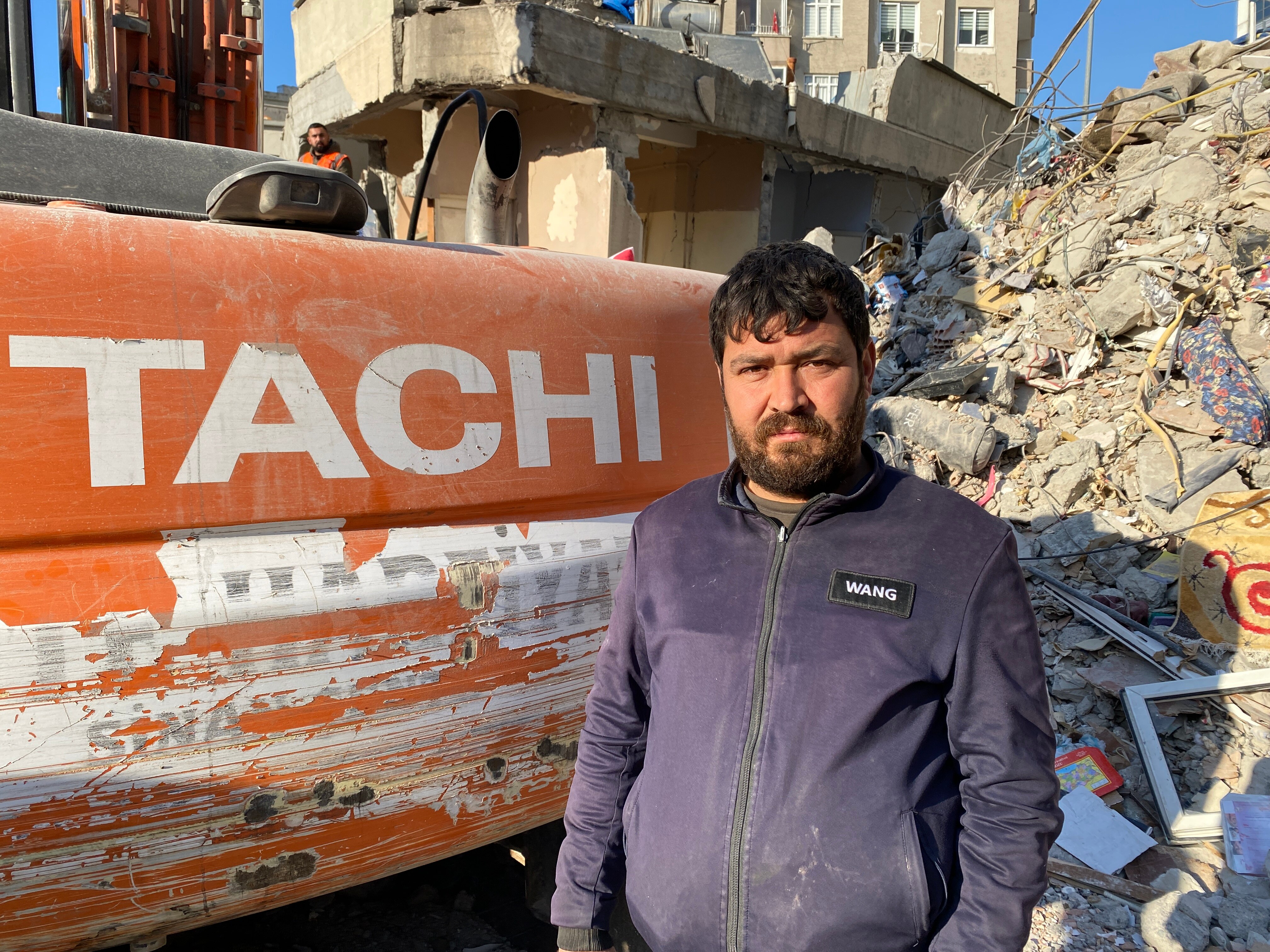 The machine's operator, Sinom Cente, had driven with 10 excavators from the nearby city of Adana to help find survivors, beating official rescue workers.