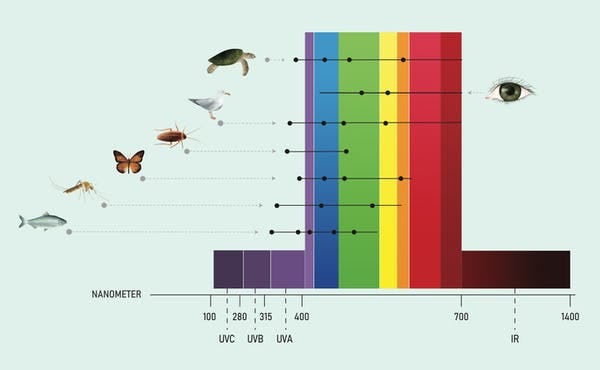 Most animals are sensitive to short-wavelength light, which creates blue and violet colors. These short wavelengths are known to suppress melatonin production, which is known to disrupt sleep and interfere with circadian rhythms of many animals, including humans.