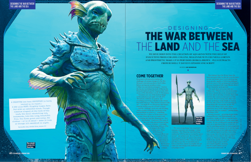 Here at SFX we love to showcase the work of behind-the-scenes creatives. This issue, Doctor Who spinoff The War Between the Land and the Sea is our main subject, as we take a deep dive into designing Aquakind. In a 10-page feature crammed with fascinating unseen concept art, makeup test photos, and extracts from the script, we speak to executive producer Joel Collins, Millennium FX CEO Neill Gorton and prosthetic make-up supervisor Georgia Brown.