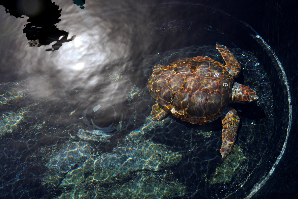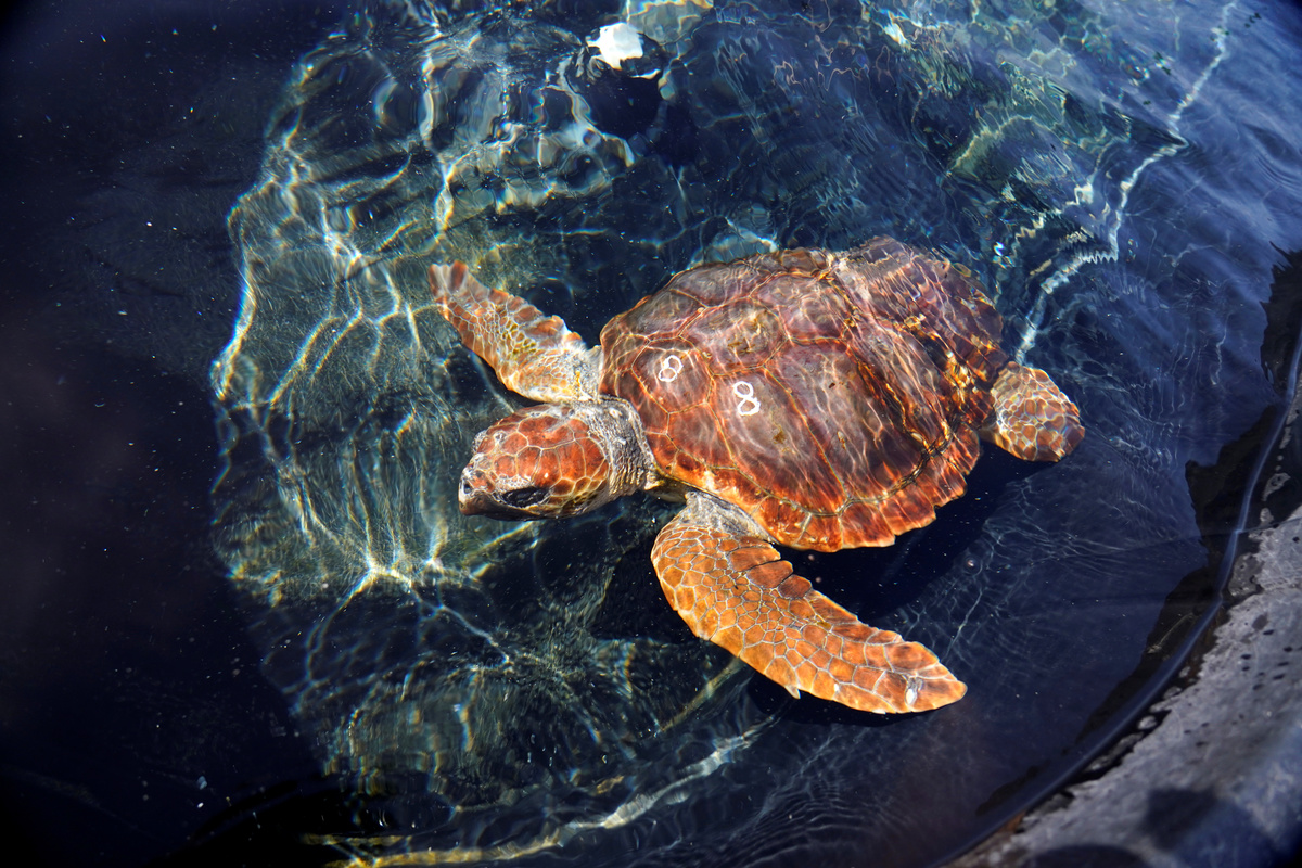 The turtle was rescued in April after it was caught on a fishing line and its flippers were badly damaged.