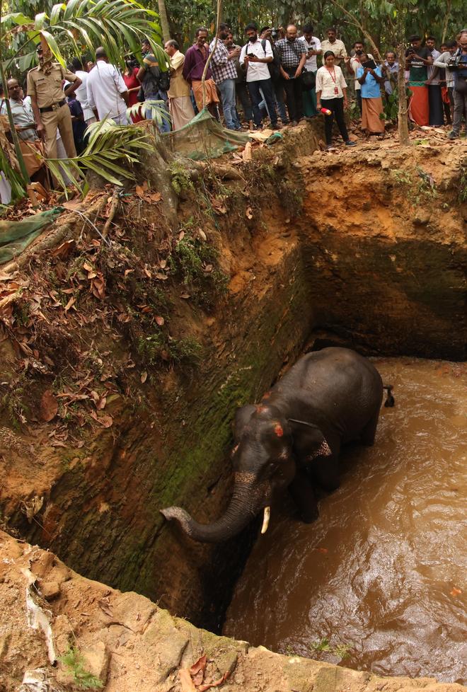The animal fell into the well of a private holding at the Kottapadi Placheri area in the early hours of the day. The forest officials brought in an excavator to create a pathway for the animal as the efforts by the elephant to get out of the well did not succeed.