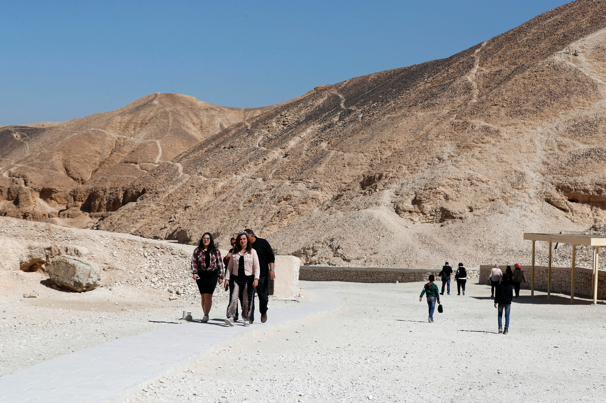 Tourists walk near the newly renovated tomb of boy pharaoh King Tutankhamun in Valley of the Kings in Luxor, Egypt January 31, 2019. REUTERS/Mohamed Abd El Ghany