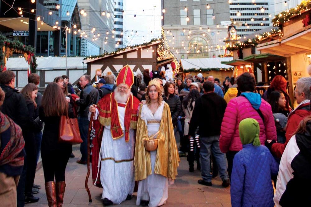 Set in the heart of downtown in Market Square, and framed by twinkling lights and the city’s towering Christmas tree, locals wander among Alpine-style chalets and stalls selling handcrafted gifts and festive treasures as carolers gently serenade them.