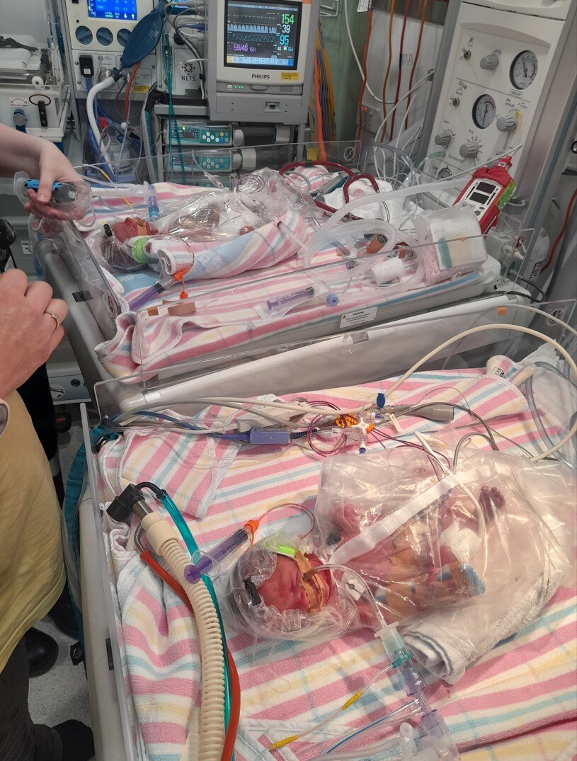 Hospital staff managed to resuscitate, intubate and stabilise the tiny twins, who weighed just 960 grams and 1.25 kilograms.
