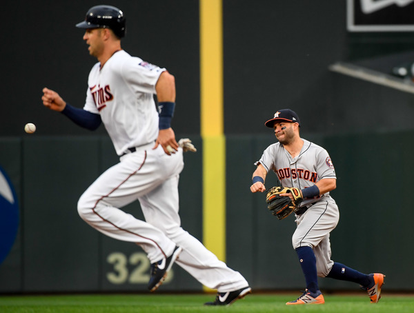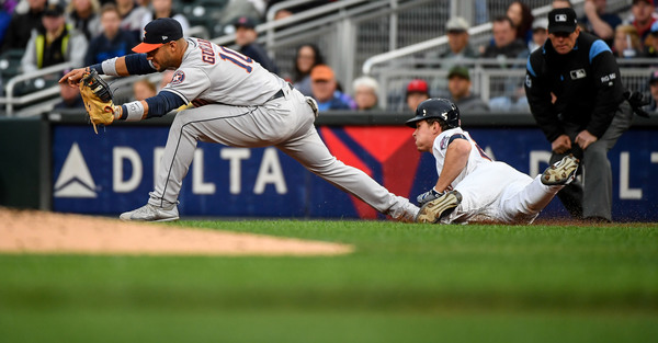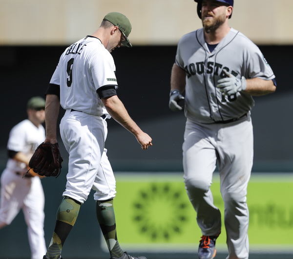 Defense played a part in the loss as well, with Byron Buxton's lacerated ring finger indirectly responsible. Buxton left the game in the sixth inning, and the Twins used Ehire Adrianza in left field for the final three innings, with Eddie Rosario moving to Buxton's spot in center. And midway through the Astros' big inning, Marwin Gonzalez hit a ball to the left field wall with the bases loaded. Adrianza, who had never played the outfield before in his five-year MLB career, made a leaping attempt to catch it at the wall, but the ball glanced off his glove, scoring two runs.